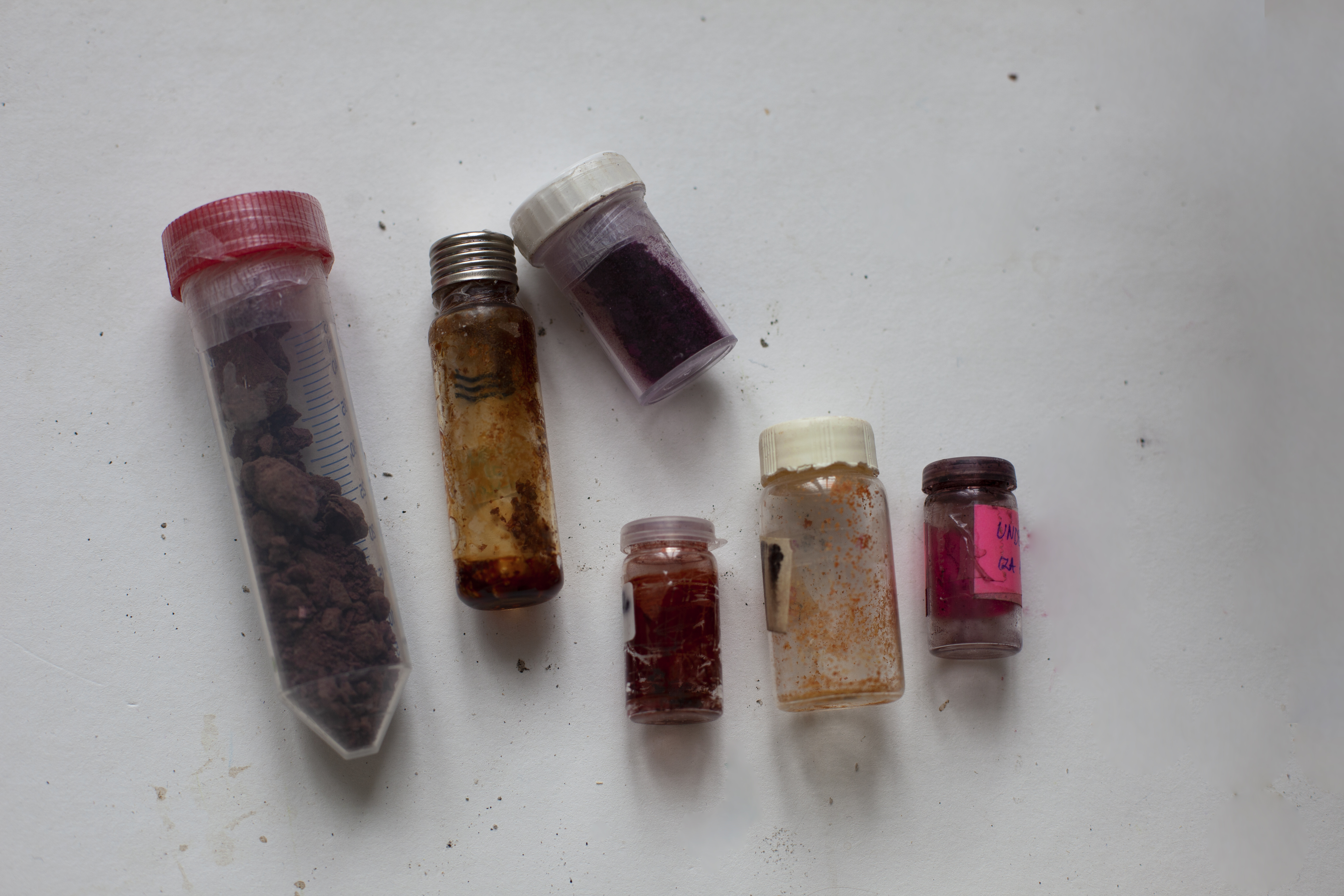 Med pigment framställt av extraherad vätska från levande bakterier har Milica Lazarevic skapat en finstämd utställning som reflekterar kring plats, identitet och skeenden.