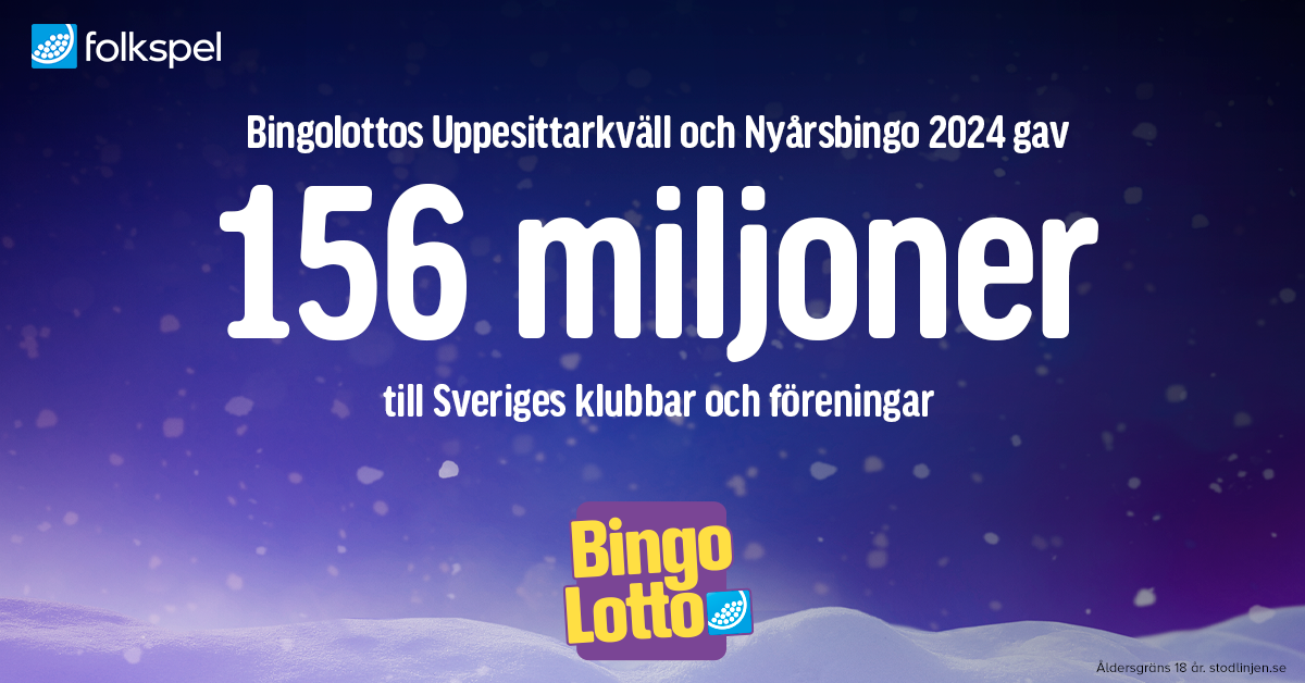 Två kvällar i december med BingoLotto innebär ett rejält tillskott till vårt föreningsliv. Försäljningen av lotter till Uppesittaren och Nyår ger landets klubbar och organisationer hela 156 miljoner kronor att fördela.