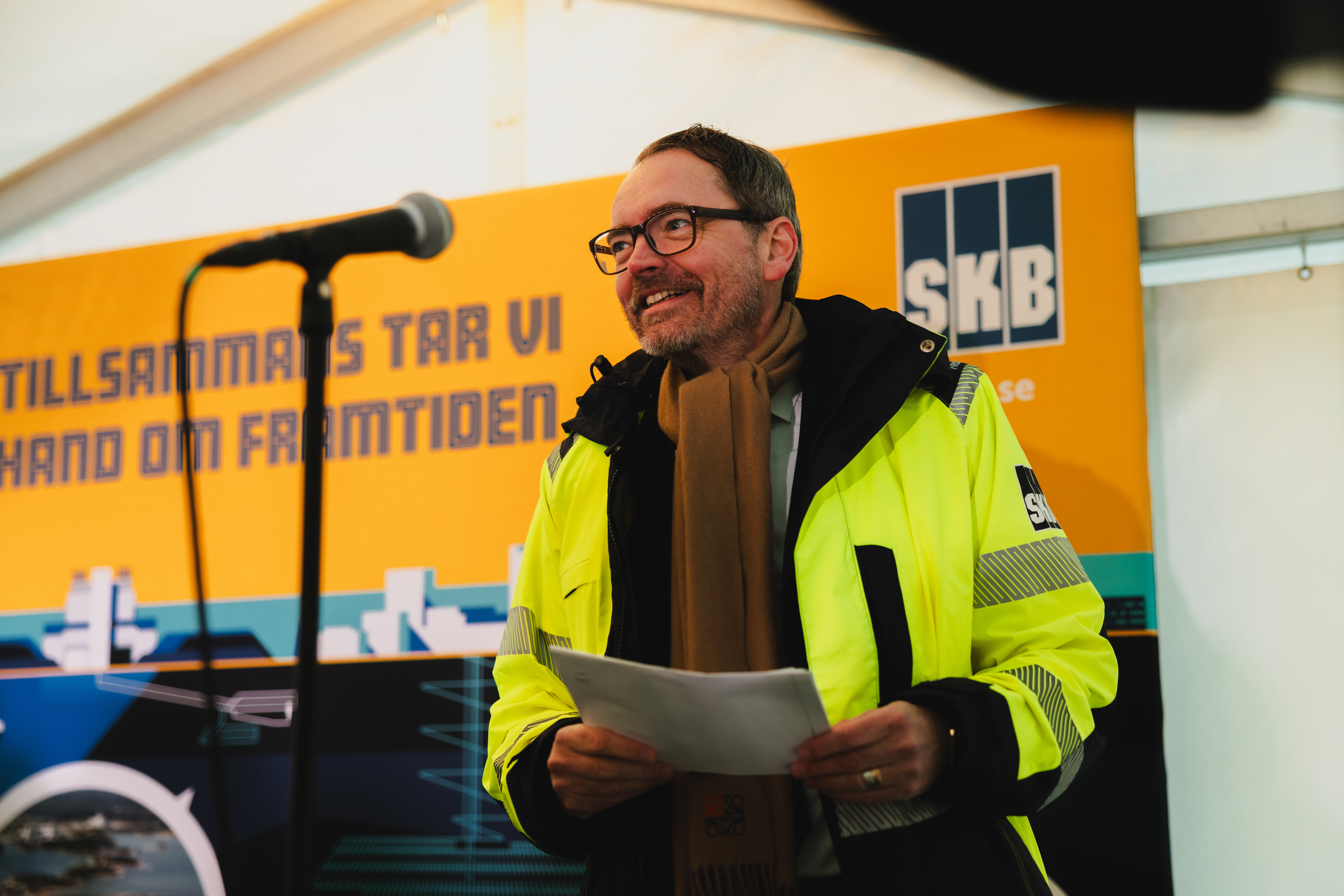 – Det är en historisk dag för det svenska kärnavfallsprogrammet. Vi tar ett viktigt steg och spadtag för en slutlig lösning för det använda kärnbränslet. Vi skapar därmed goda förutsättningar för en fortsatt fossilfri elproduktion, säger Stefan Engdahl vd för SKB.
