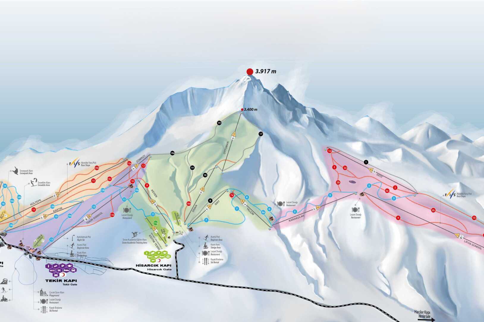 Skidorten ligger på 2200 möh, sträcker sig upp till hisnande 3.917 meter över havet och erbjuder hög internationell standard med 112 km preparerade pister, 34 spår av varierande svårighetsgrad, toppmodern infrastruktur, liftsystem från Doppelmayr och snöförhållanden från december till mars. Efter en dag i backen är det en kort bilresa (39 min) till staden Kayseri, där du kan gå på skattjakt i en av Turkiets största basarer - eller låta dina smaklökar löpa amok på en av de många restaurangerna.