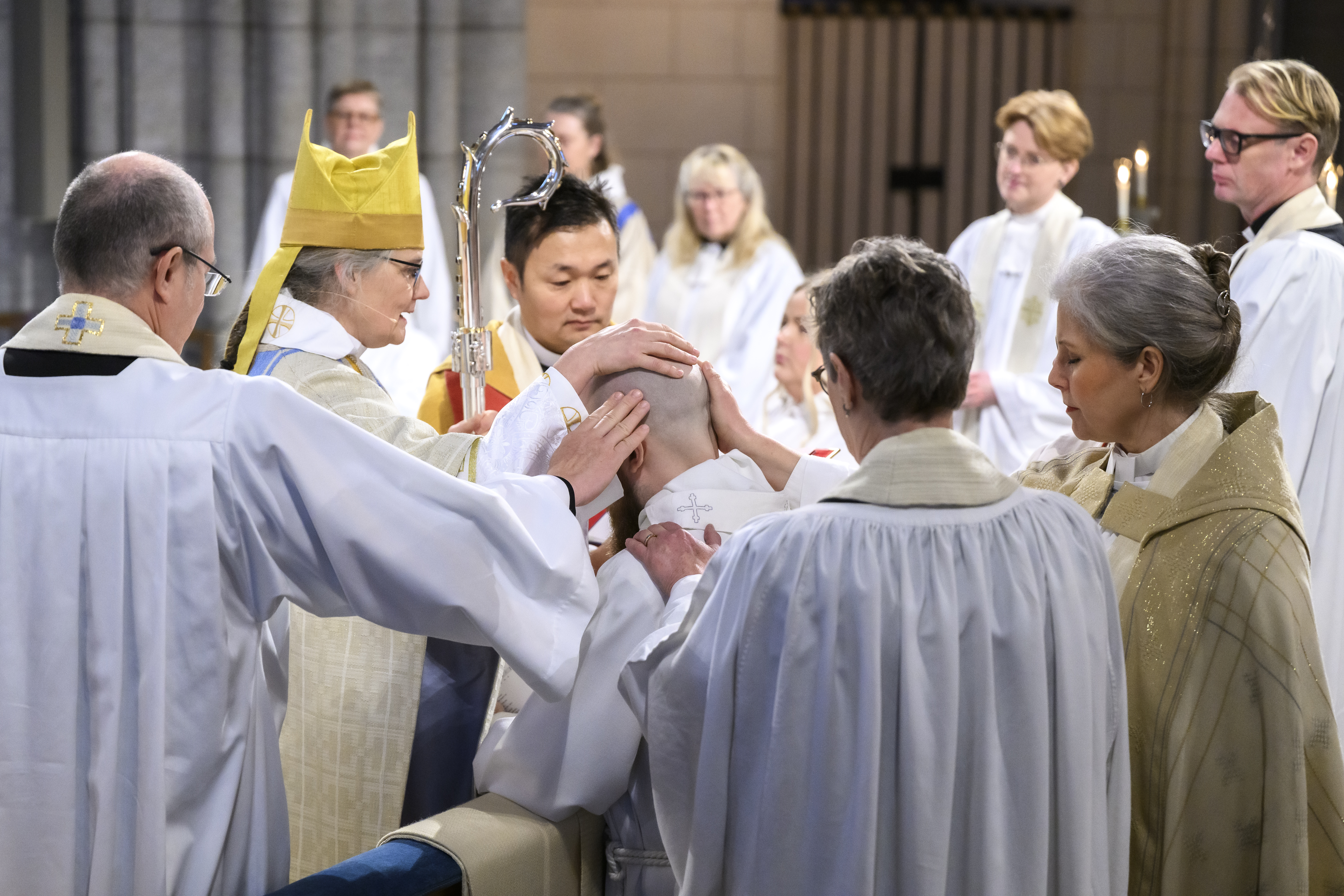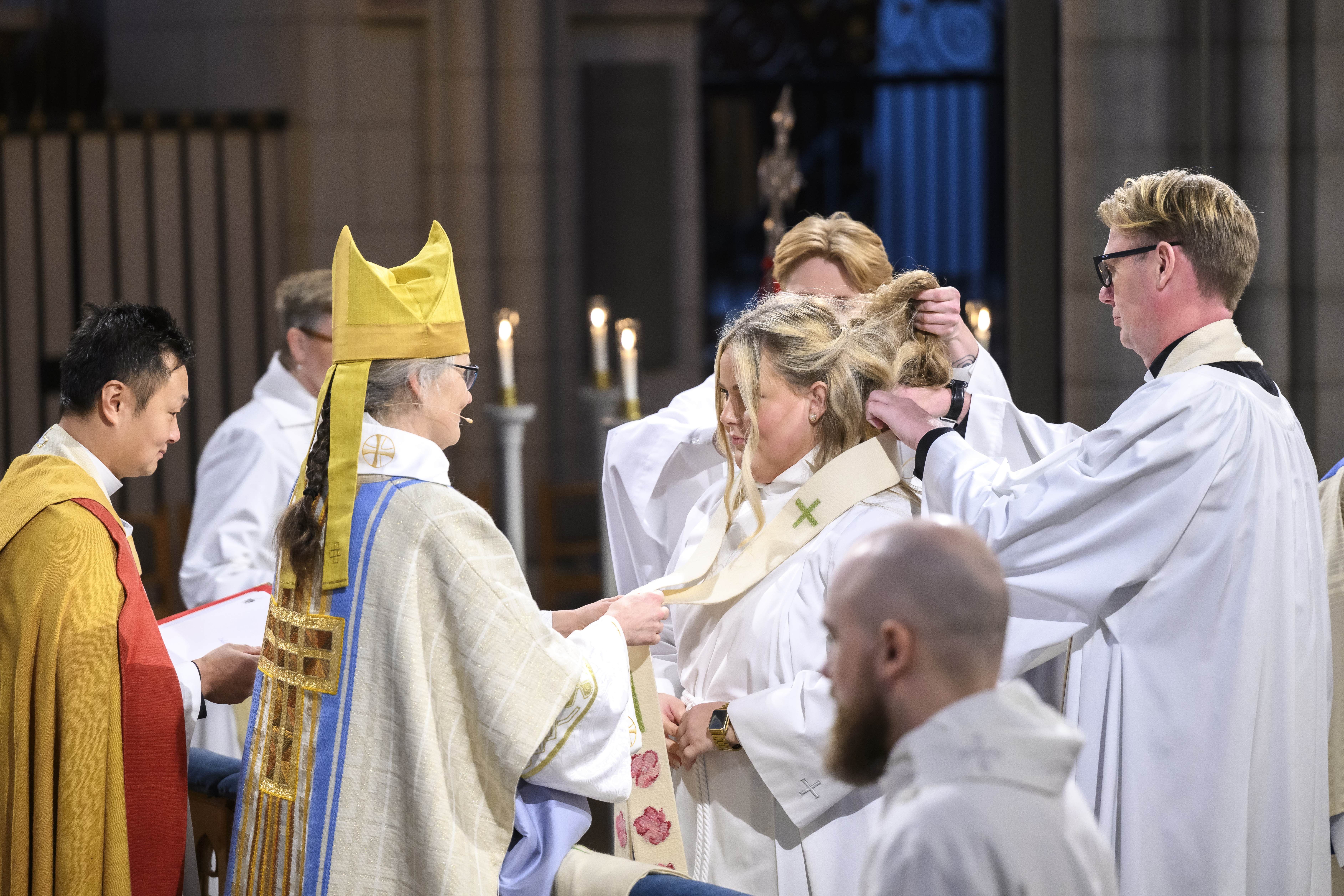 Biskop Karin Johannesson vigde Izabella Ivekrans och Nils Wik till präster och Anne Hurmerinta till diakon under söndagen högmässa i Uppsala domkyrka.