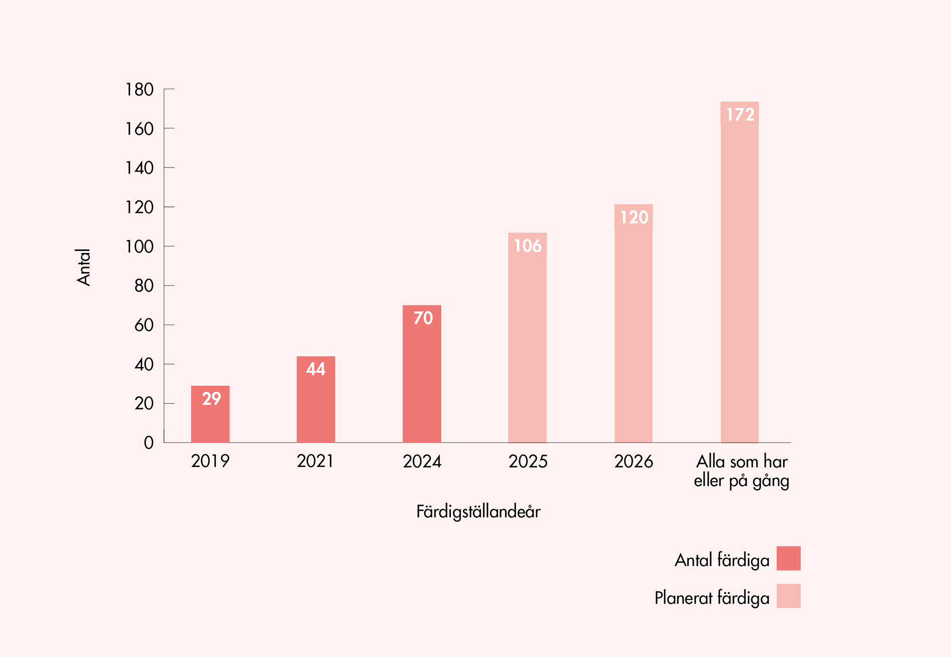 - Antalet kommuner med arkitekturpolicy har ökat från 29 år 2019 till 70 år 2024 – mer än en fördubbling.