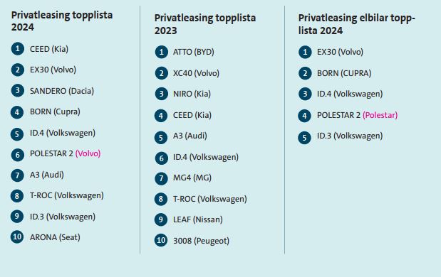 - Under 2024 registrerades totalt 41 702 nya privatleasingavtal. Det motsvarar 45 procent av de hushåll som skaffade en ny bil under året.