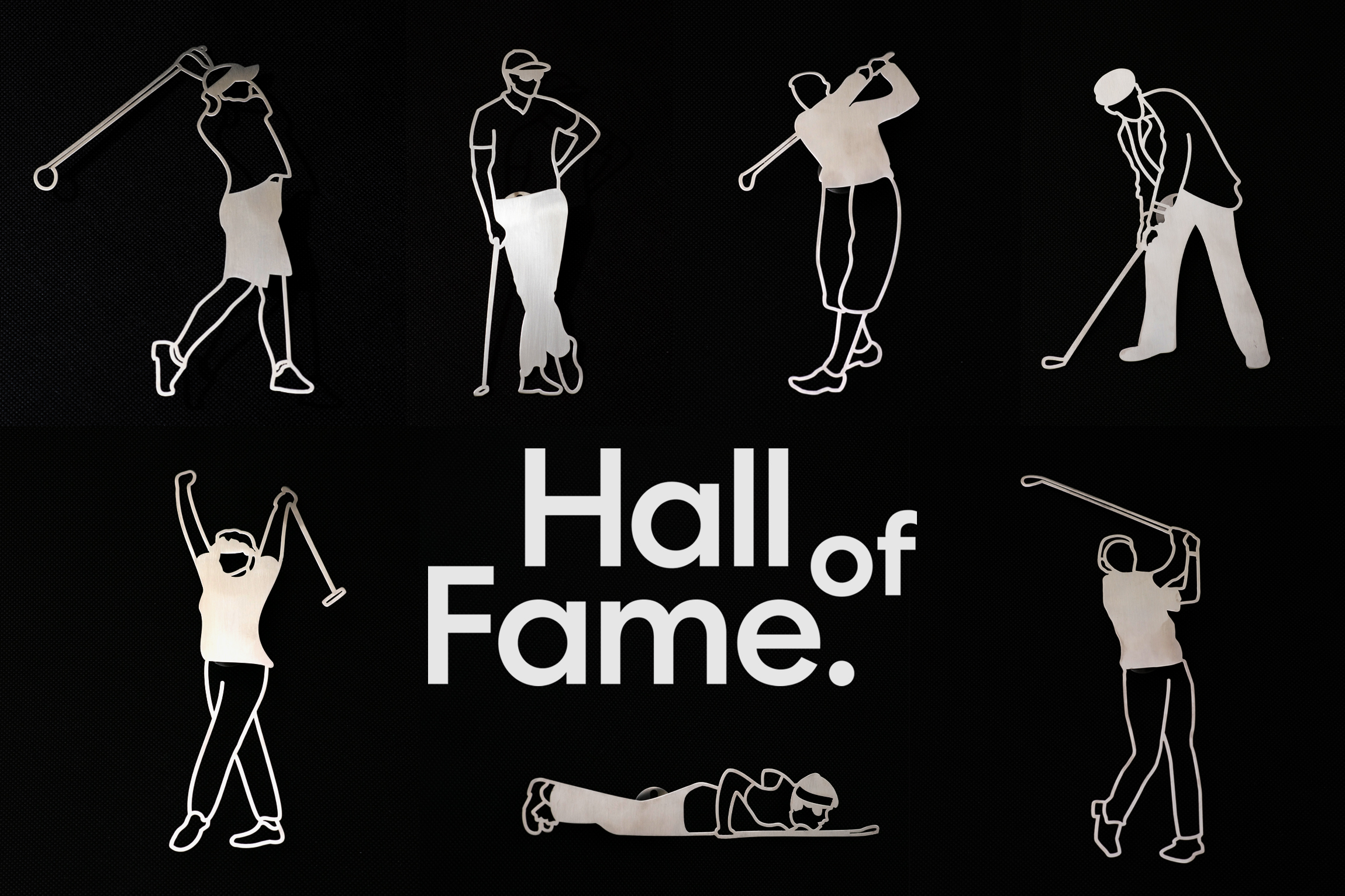Hall of Fame-väggen har en central plats i den nya utställningen på Svenska Golfmuseet. Varje invald person får en personlig statyett med motivering, samt en video som sammanfattar personens gärning och karriär inom golfen.
