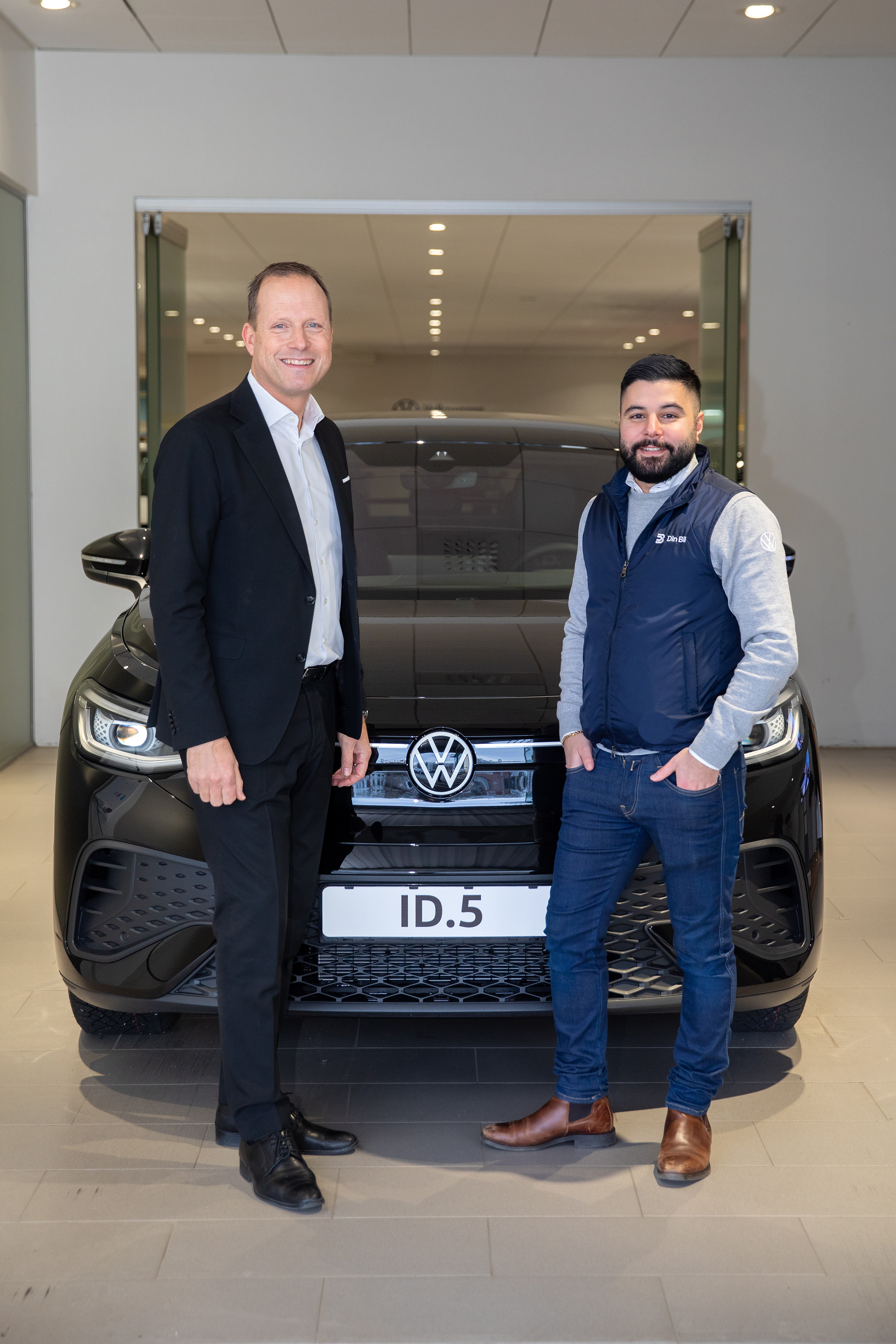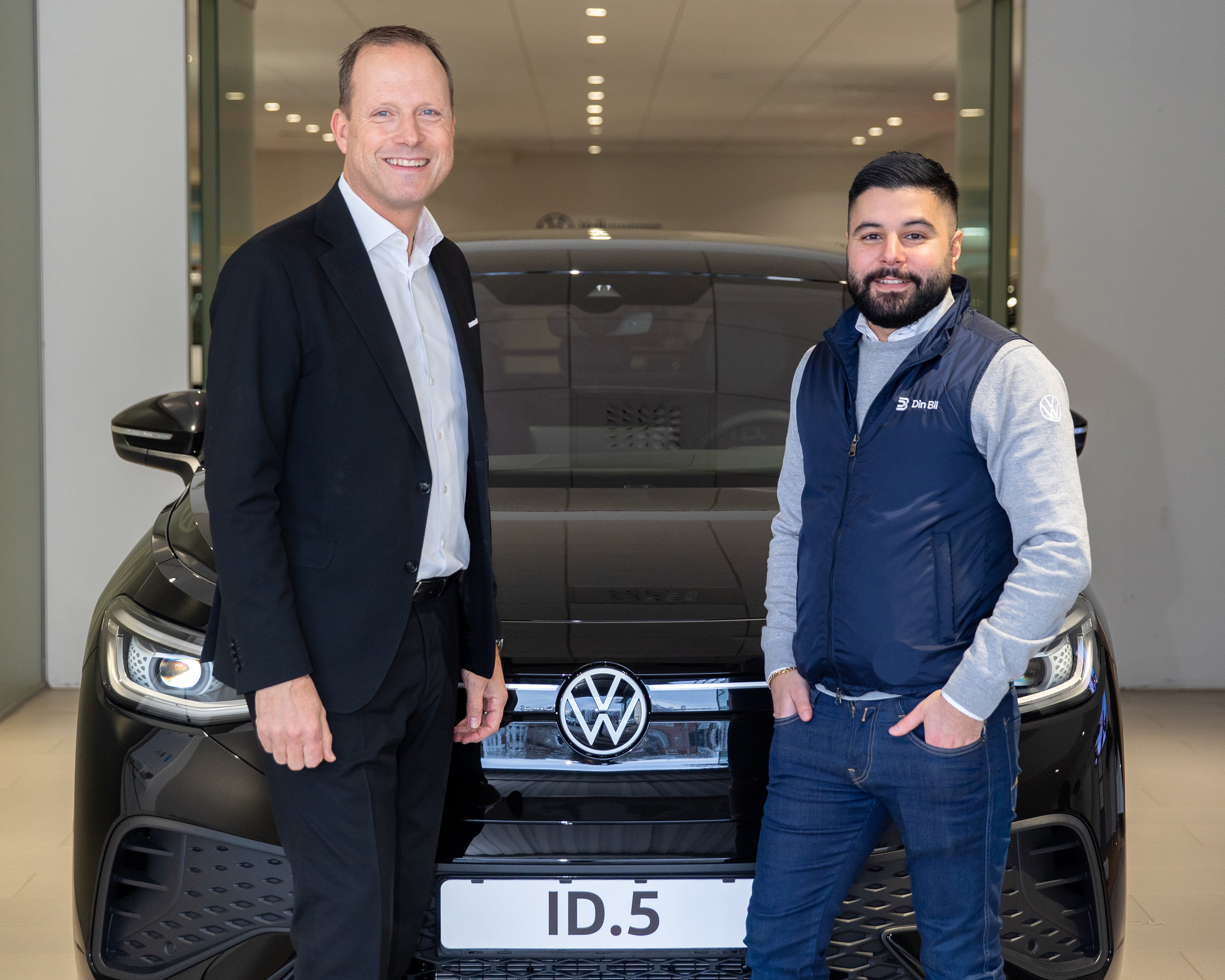 Häromdagen var han på plats hos Din Bil Volkswagen Täby för att fira leveransen av den 55 555:e nyregistrerade personbilen från den eldrivna ID.-familjen, en ID.5 Pro med 286 hk.