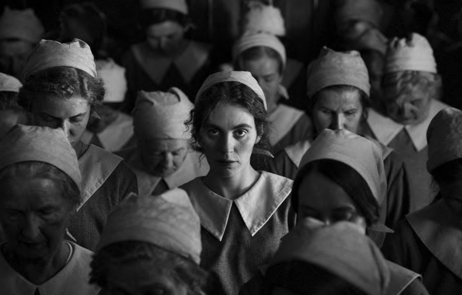 Flickan med nålen utspelar sig 1918, och den unga fabriksarbetaren Karoline, som blivit änka under första världskriget, blir gravid. Hon förskjuts av både honom och hans mor. Kort därefter överraskas hon av att hennes make återkommer från kriget svårt fysiskt och psykiskt nedbruten och traumatiserad. Han accepterar att hon är gravid med en annan mans barn men hon är oförmögen att ta emot både honom och det växande barnet.