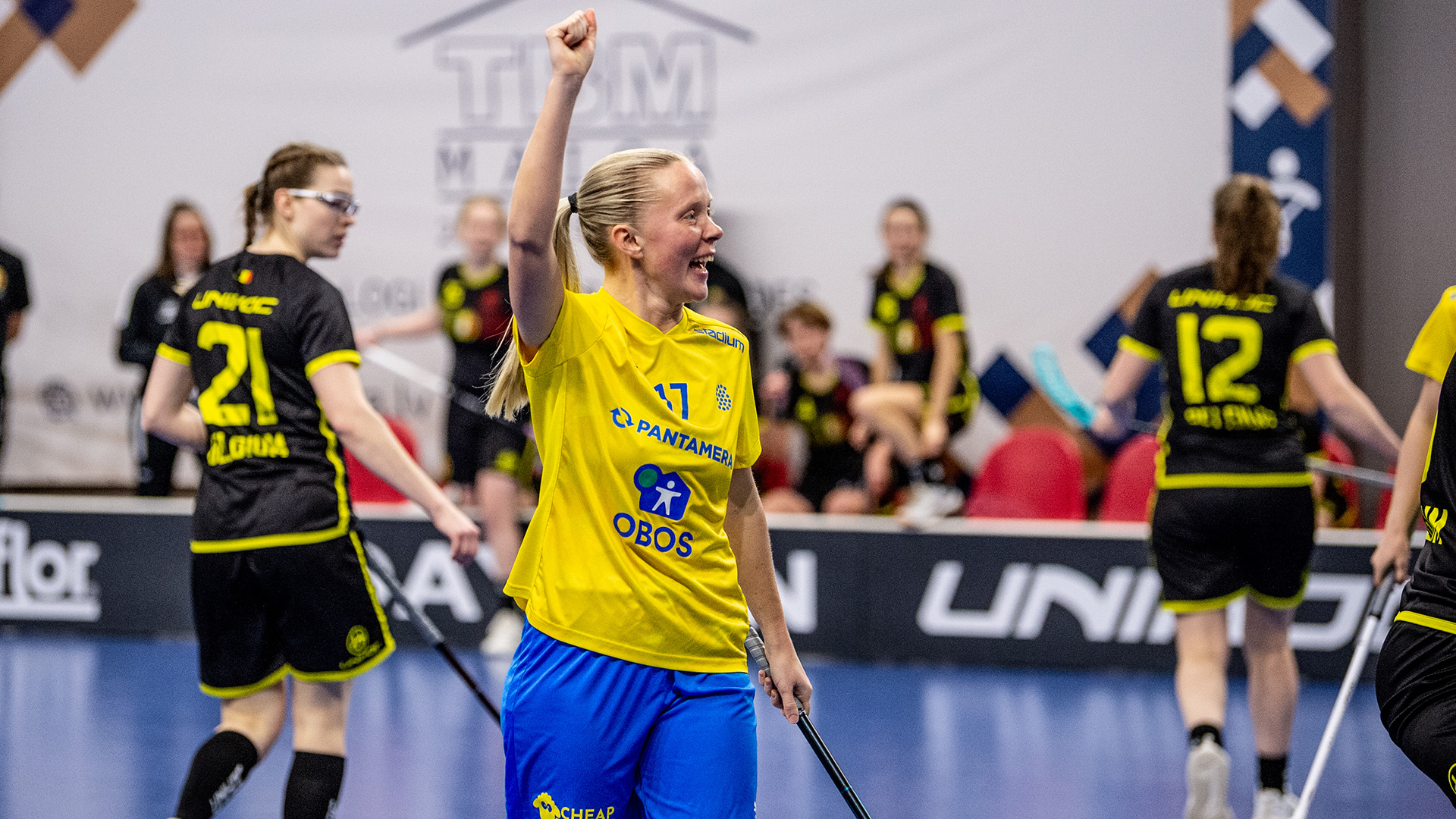 Första målet kom bara efter cirka en minut för Emma Stenberg. Det skulle bli tre till i första perioden och sen fortsatte målkavalkaden för Pixbospelaren och hela Sverige i mötet mot Belgien.