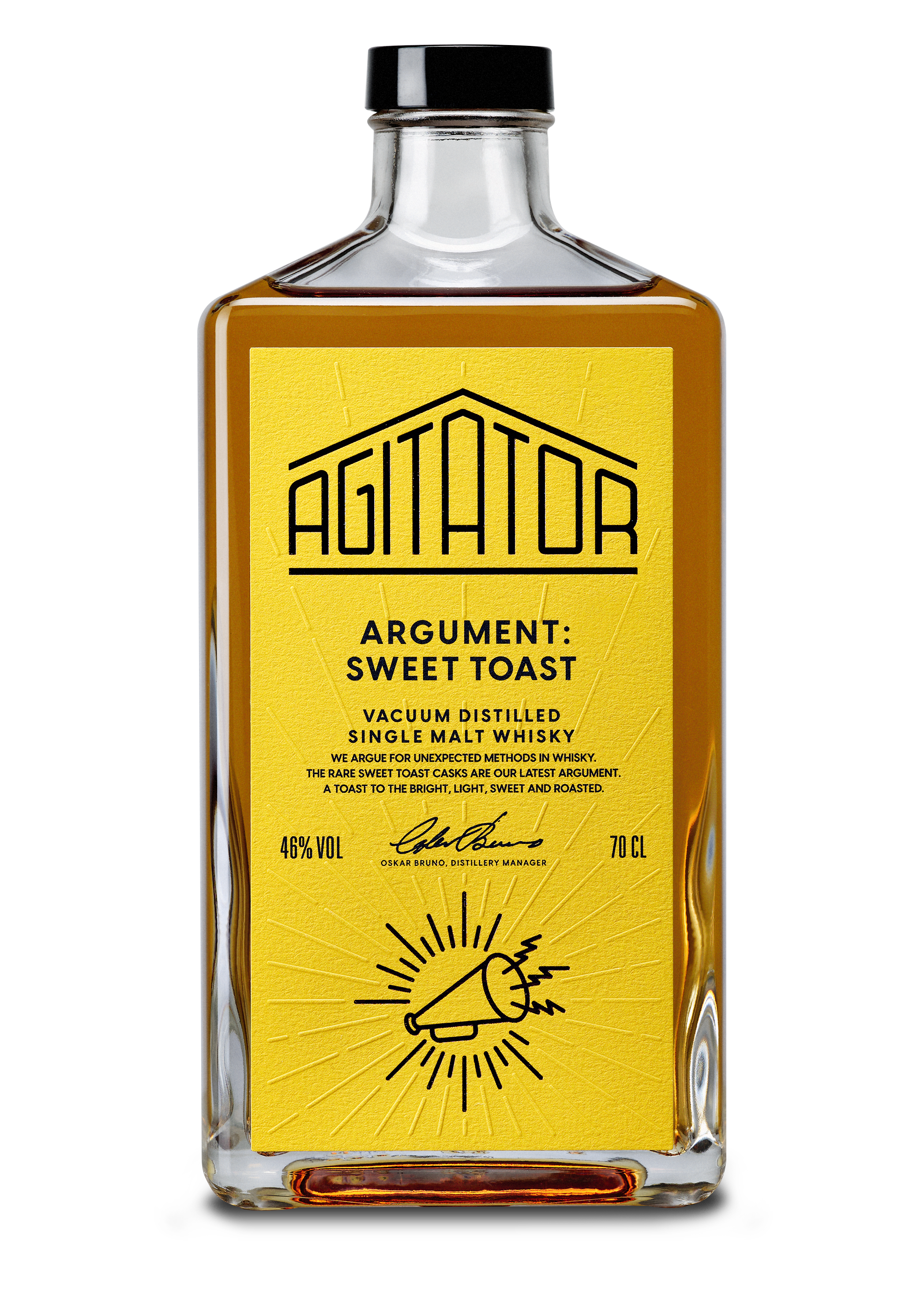 I slutet av januari lanseras Agitators senaste whisky, Argument: Sweet Toast. Det är ett begränsat släpp, endast tillgänglig en månad. Efter detta fasar destilleriet ut de flesta produktförpackningarna. “Vi har samma attityd till hållbarhet som vi har till whiskyproduktion”, säger destillerichefen Oskar Bruno.