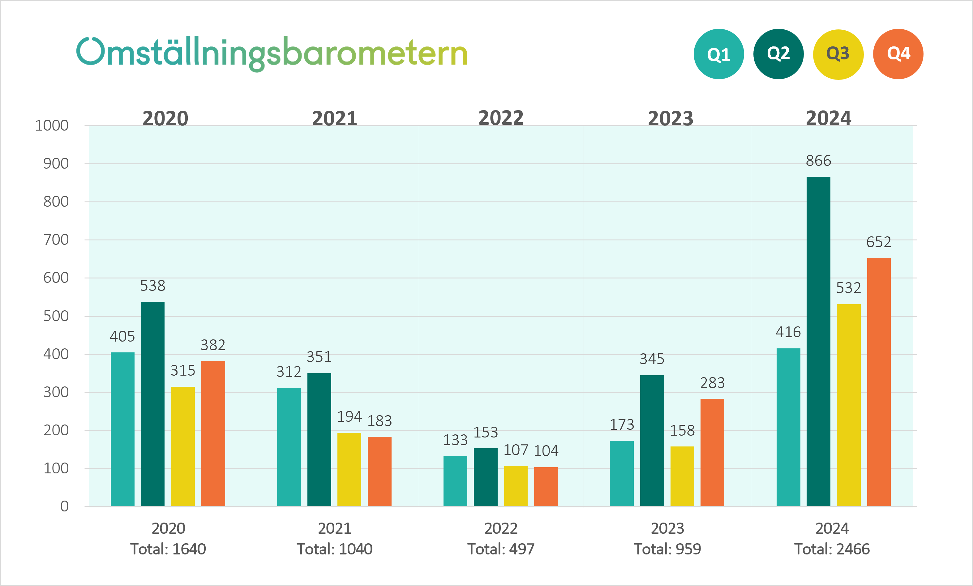 Uppsägningarna på grund av arbetsbrist har ökat markant inom välfärden de senaste åren. 2022 blev 497 personer uppsagda, och 2023 var motsvarande antal 959 personer. Siffrorna för 2024 visar alltså på en fortsatt negativ trend.