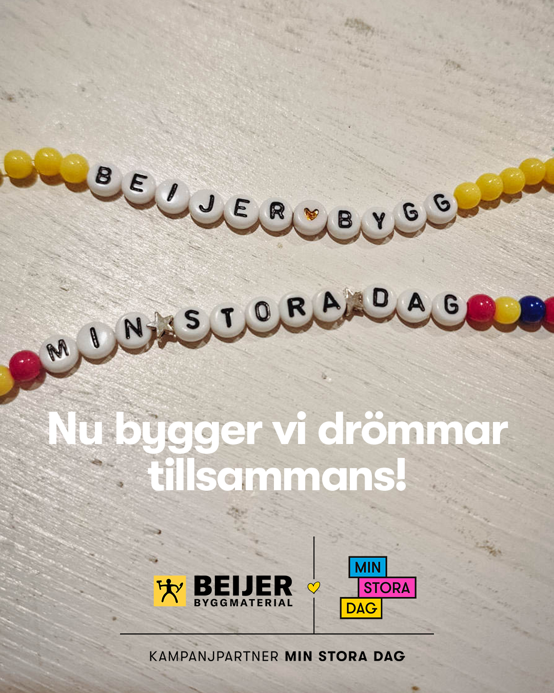 Beijer Byggmaterial har inlett ett samarbete med välgörenhetsorganisationen Min Stora Dag, vars uppdrag är att uppfylla önskningar och sprida livsviktig glädje till barn med allvarliga sjukdomar och diagnoser. Beijer, som till vardags förser Sveriges hantverkare med byggmaterial, vill nu bidra till att fler barn kan få en Stor Dag.