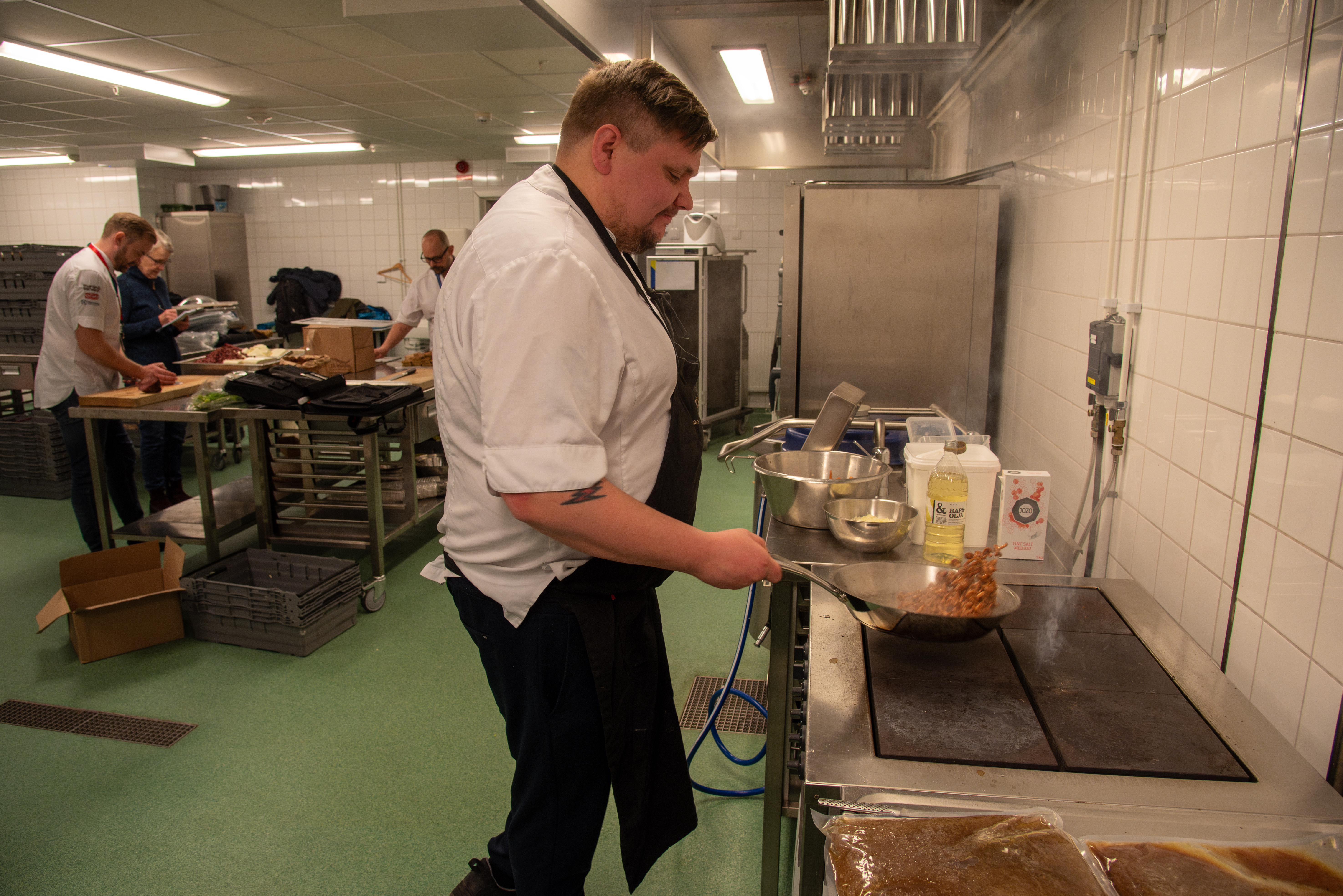 Uppdraget att anpassa råvarorna till gästerna på Stadsmissionen gick till Jens Ericsson, general manager för det svenska kocklandslaget och RHS-alumn. Han och hans kolleger Erik Möller och Leif Klövstedt har i fyra år arbetat tillsammans med maten till den akademiska högtiden, ett uppdrag som kräver planering i mycket god tid och en övertidsvecka för själva tillredningen.