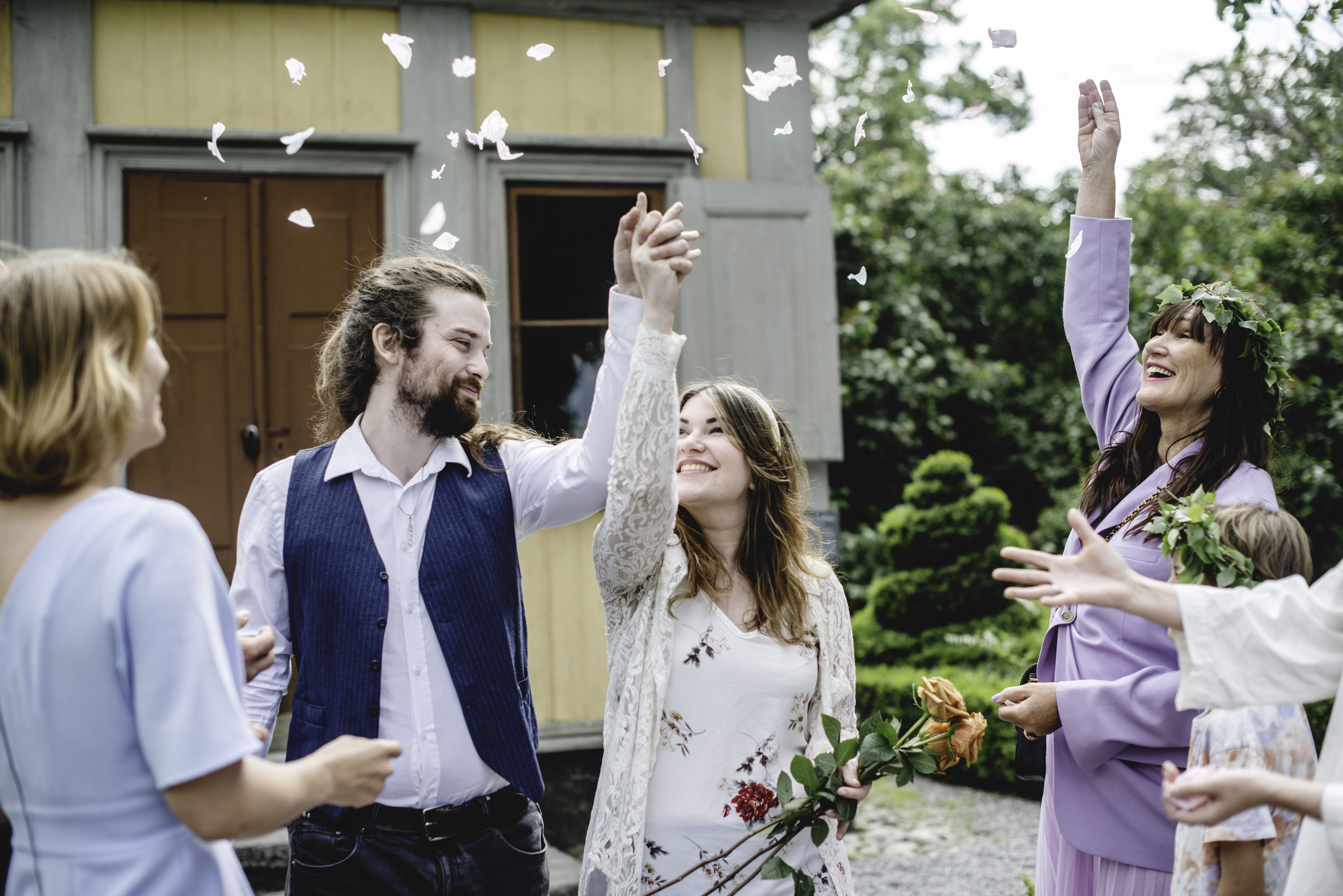 Drop in-vigslarna genomförs i Rosengården, belägen intill Bröllopsterrassen (Oscarsterrassen), som under dagen blir firandets centrum. Här erbjuds musik, festlig stämning, en fotoplats och möjlighet att köpa dryck och tilltugg. Gäster kan även binda björklövskransar eller besöka närliggande caféer och Stadskvarteret.