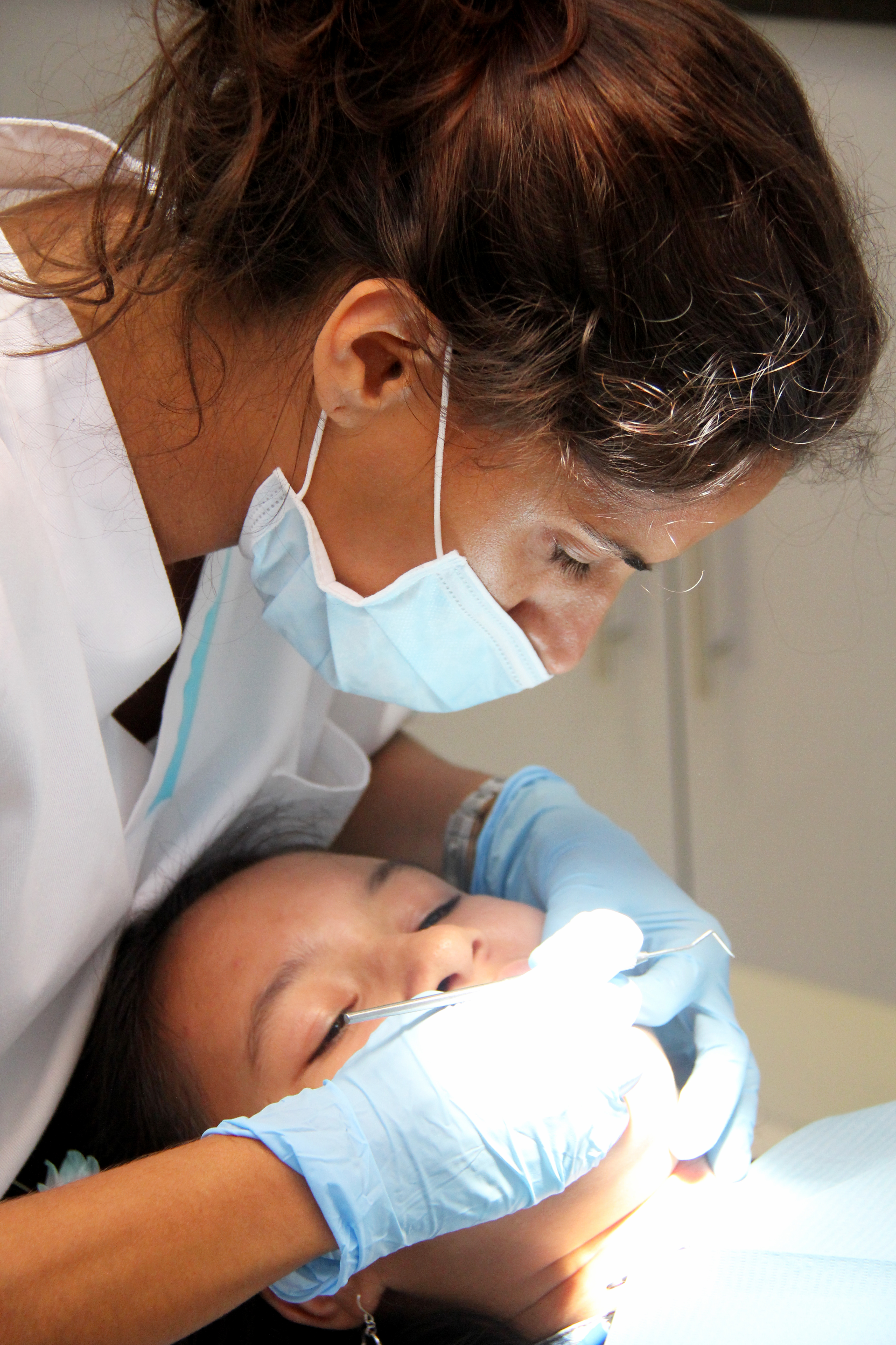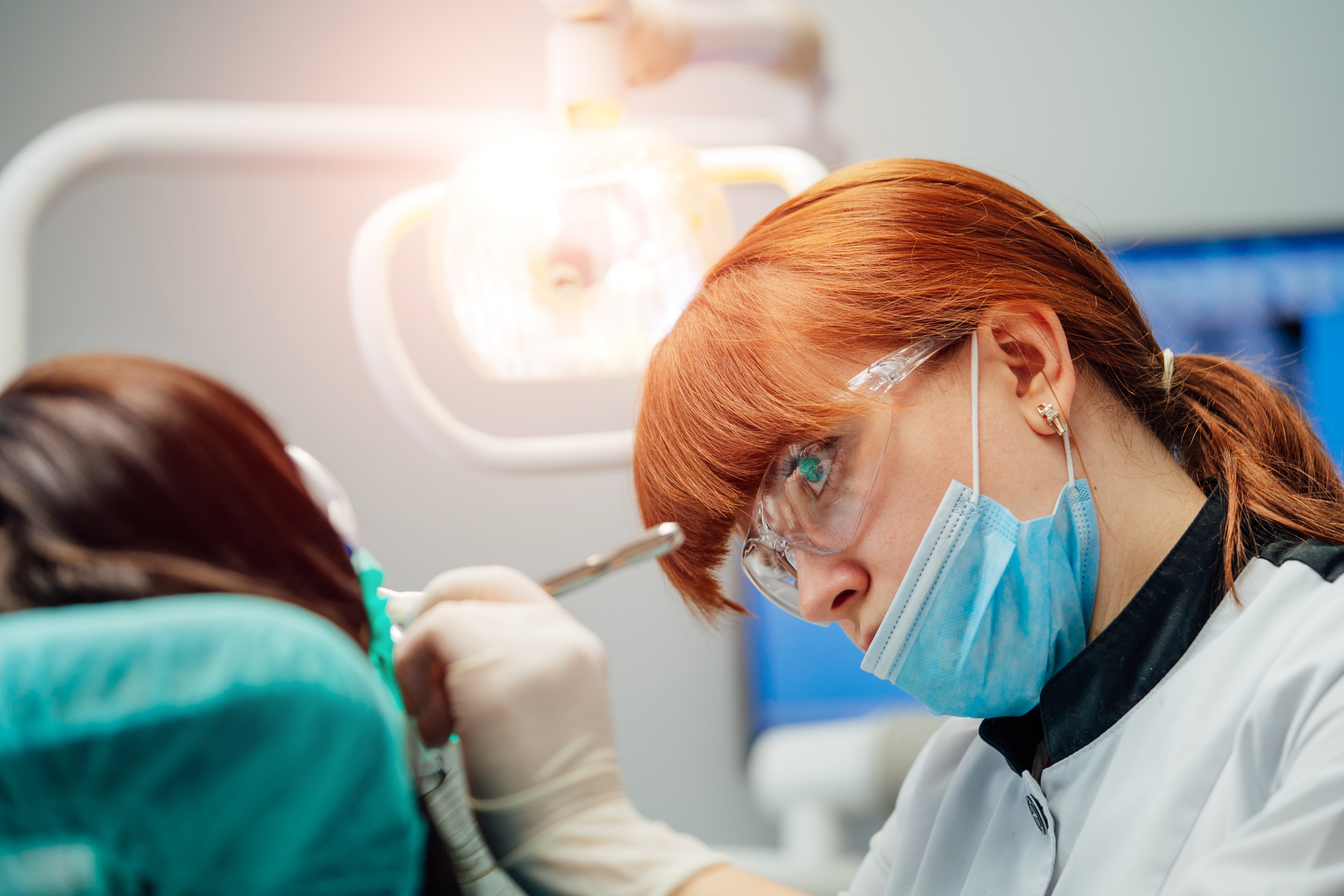 Patient ligger i tandläkarstol och tandläkaren ska påbörja en undersökning