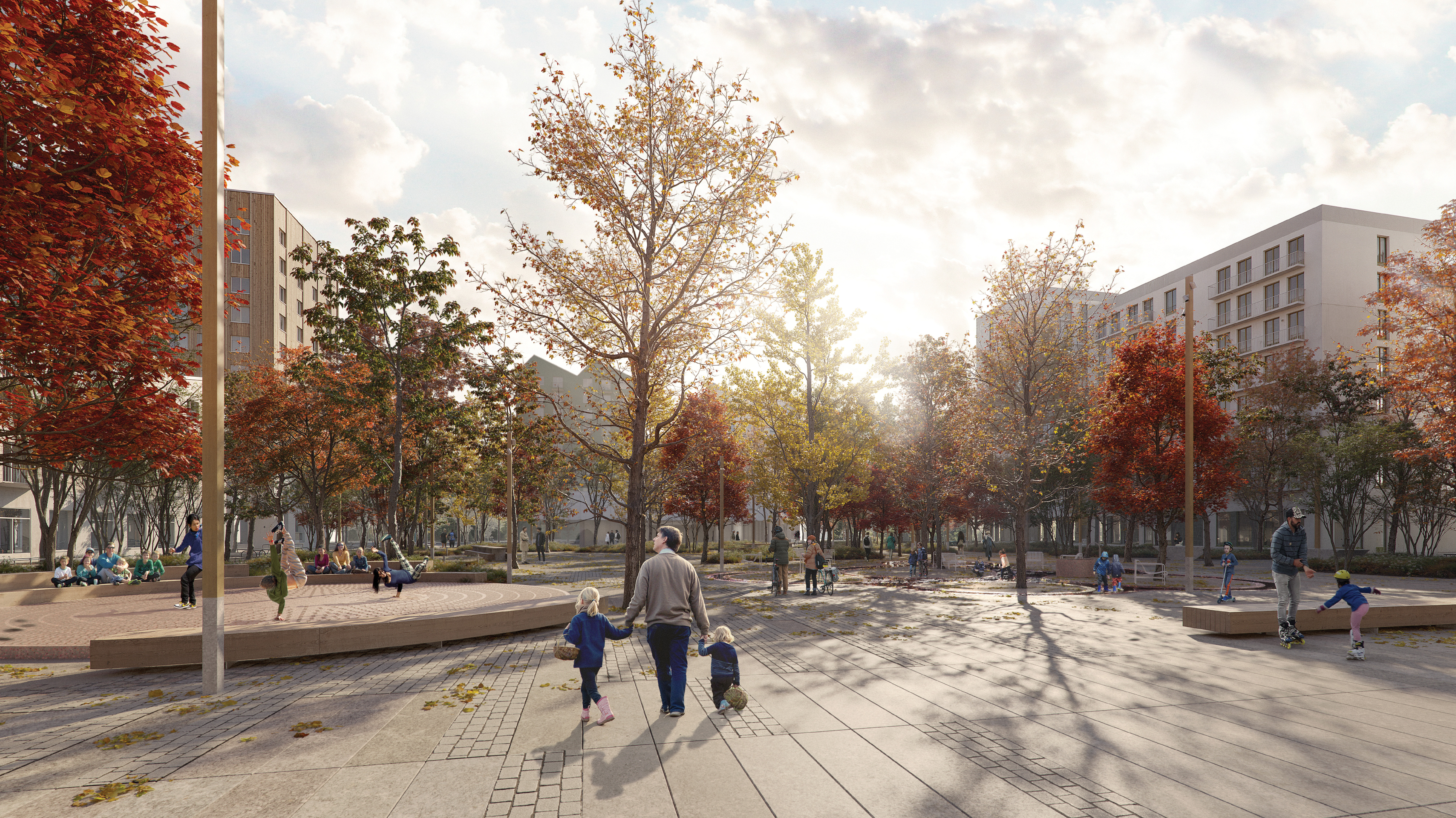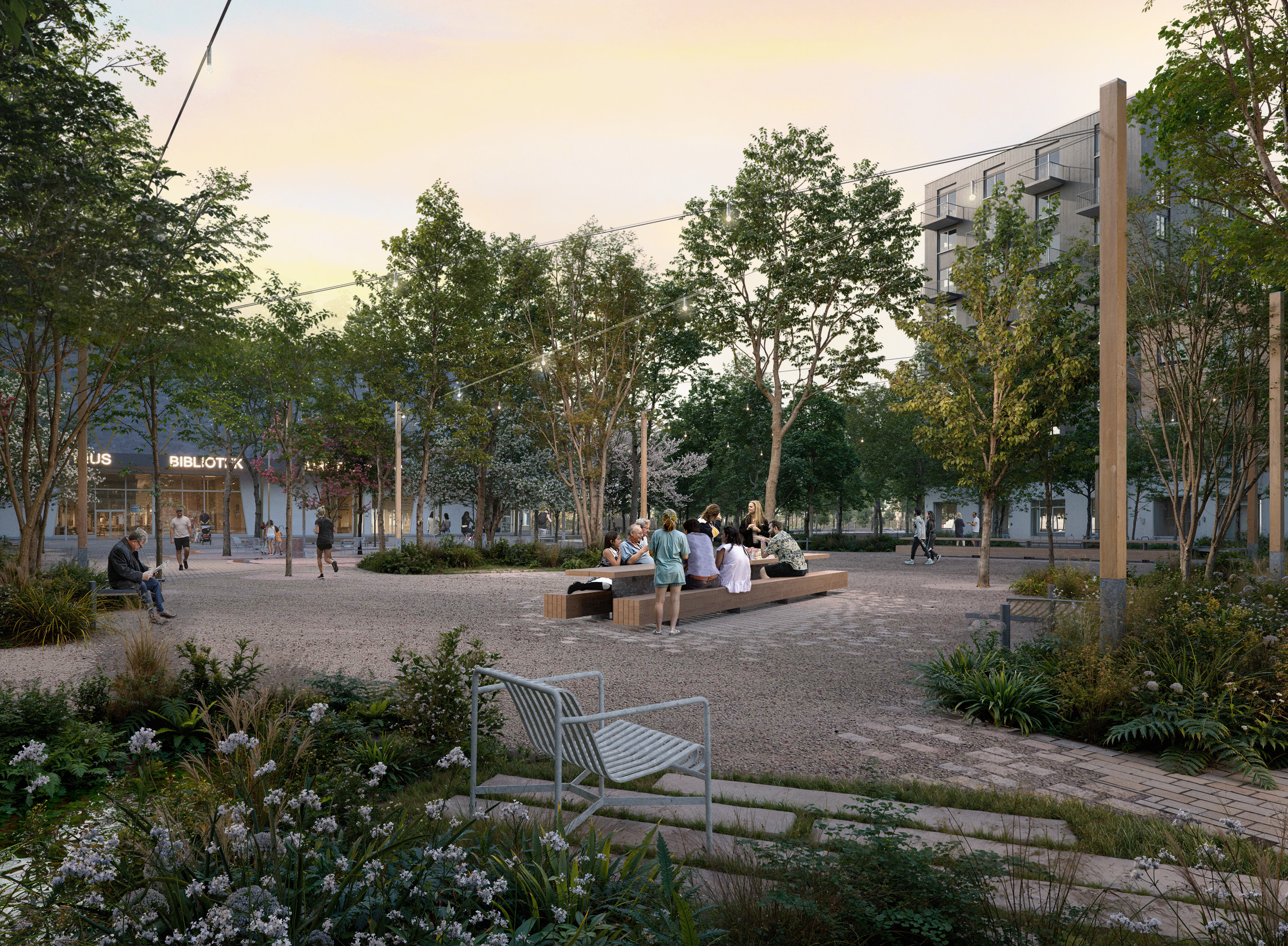 – Vi är verkligen glada att vårt förslag Gläntan nu kommer att realiseras. Vi har tagit tillvara alla de fina värden som platsen och omgivningarna erbjuder och skapat en mötesplats värd den nya innovativa stadsdelen. Vårt förslag visar hur en stor central yta kan utvecklas till en hållbar, flexibel och inspirerande plats där människor kommer att trivas och mötas alla tider på dygnet, säger Nina Rydén, Bjerking.