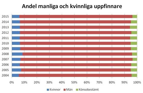 - Endast 6 procent* av alla patentansökningar som inkom till PRV under 2015 kom från kvinnliga uppfinnare.