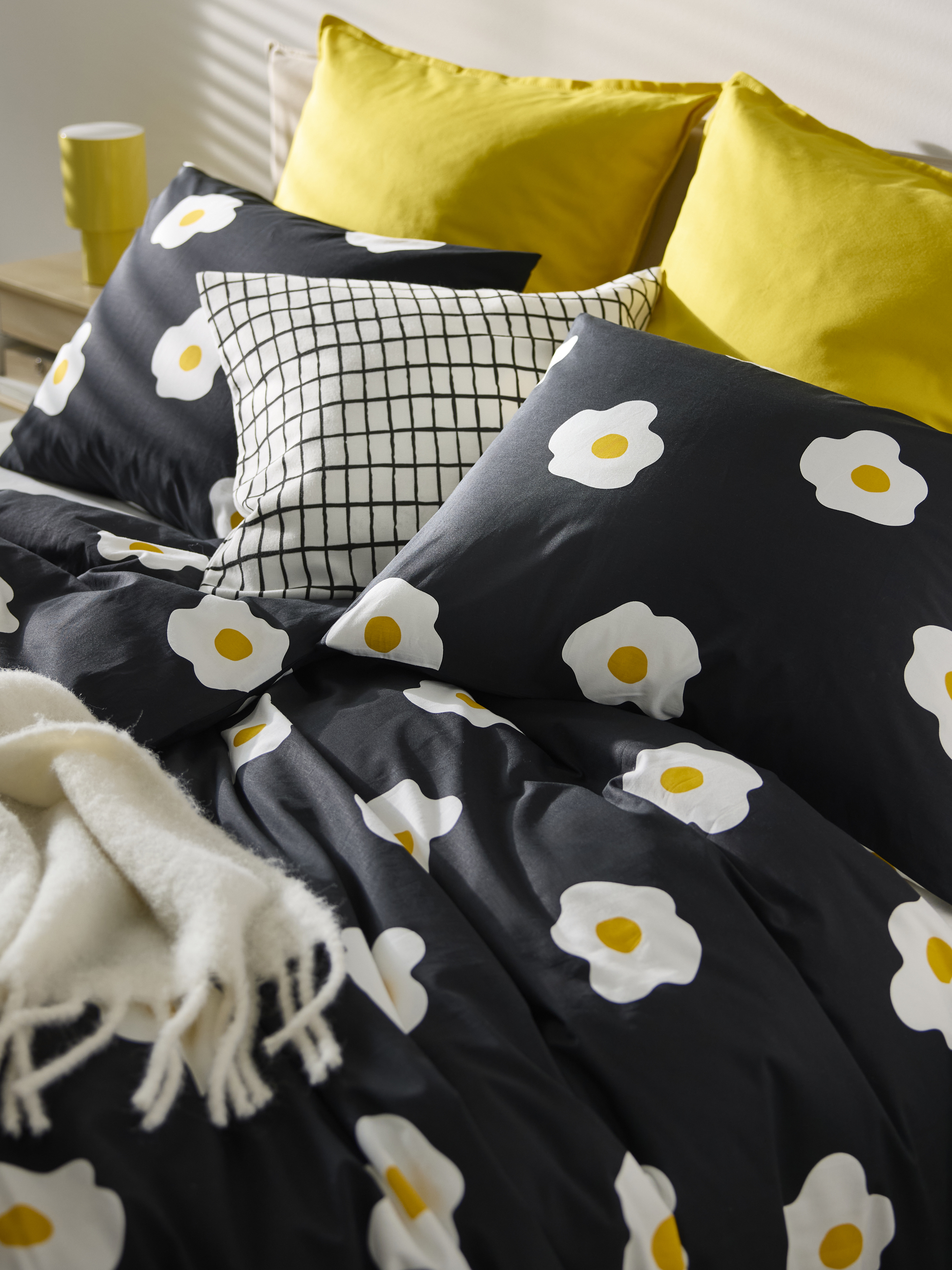 Kommer en rosa kudde eller udda sängkläder med äggtema att förändra hela din värld? Kanske inte, men de är mer än bara inredning. De ger dig små ögonblick av glädje som får dig att le! Den här säsongen introducerar vi tre livfulla kombinationer fulla av djärva mönster, livliga färger och lekfulla detaljer som kommer att lysa upp ditt hem.