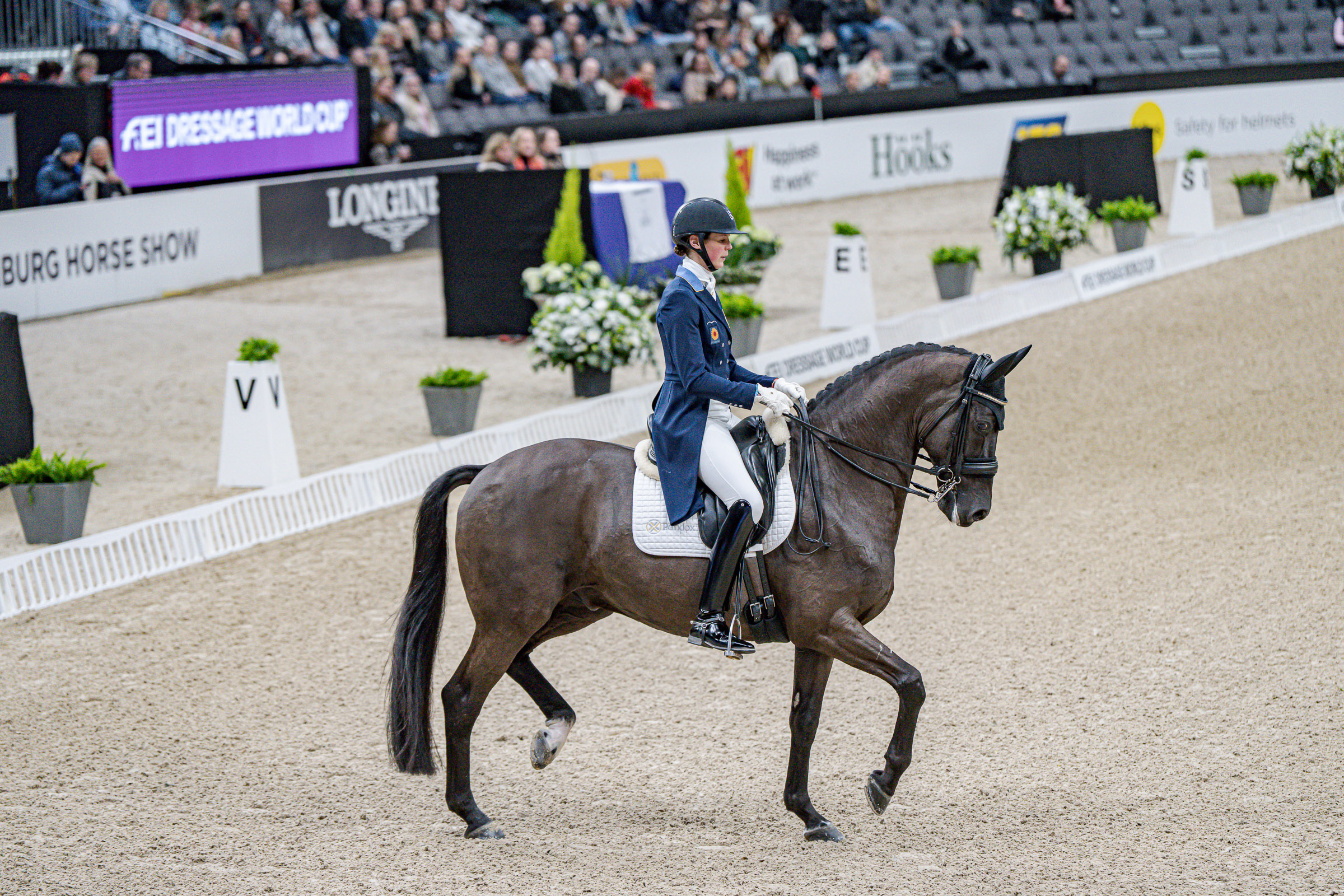 Publiken stod upp och applåderade när danska Cathrine Laudrup Dufour red ut från arenan. Med 83,369 tog Cathrine och Mount St John Freestyle hem segern i världscupens Grand Prix-klass.