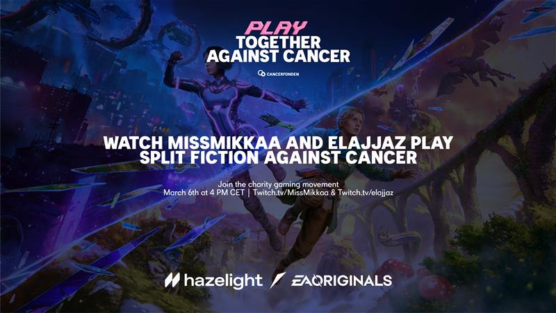 I samband med lanseringen av spelet Split Fiction har Cancerfonden och Hazelight Studios ett insamlingsevent där MissMikkaa och Elajjaz kommer spela på sina Twitchkanaler. Under livestreamen kommer tittarna uppmuntras att bidra till Cancerfonden genom olika insamlingsaktiviteter. Hazelight Studios kommer även under lanseringen lotta ut olika giveaways och EA (Electronic Arts) bidrar med spelkoder till de som bidragit till insamlingen för att uppmana fler att skänka en gåva.