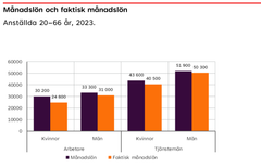 Enligt förra årets rapport förlorade arbetarkvinnor i snitt drygt 5000 kronor per månad jämfört med om de arbetat heltid. Det har nu ökat till 5 400 kronor per månad, enligt LO:s nya bearbetning av SCB:s lönestrukturstatistik.