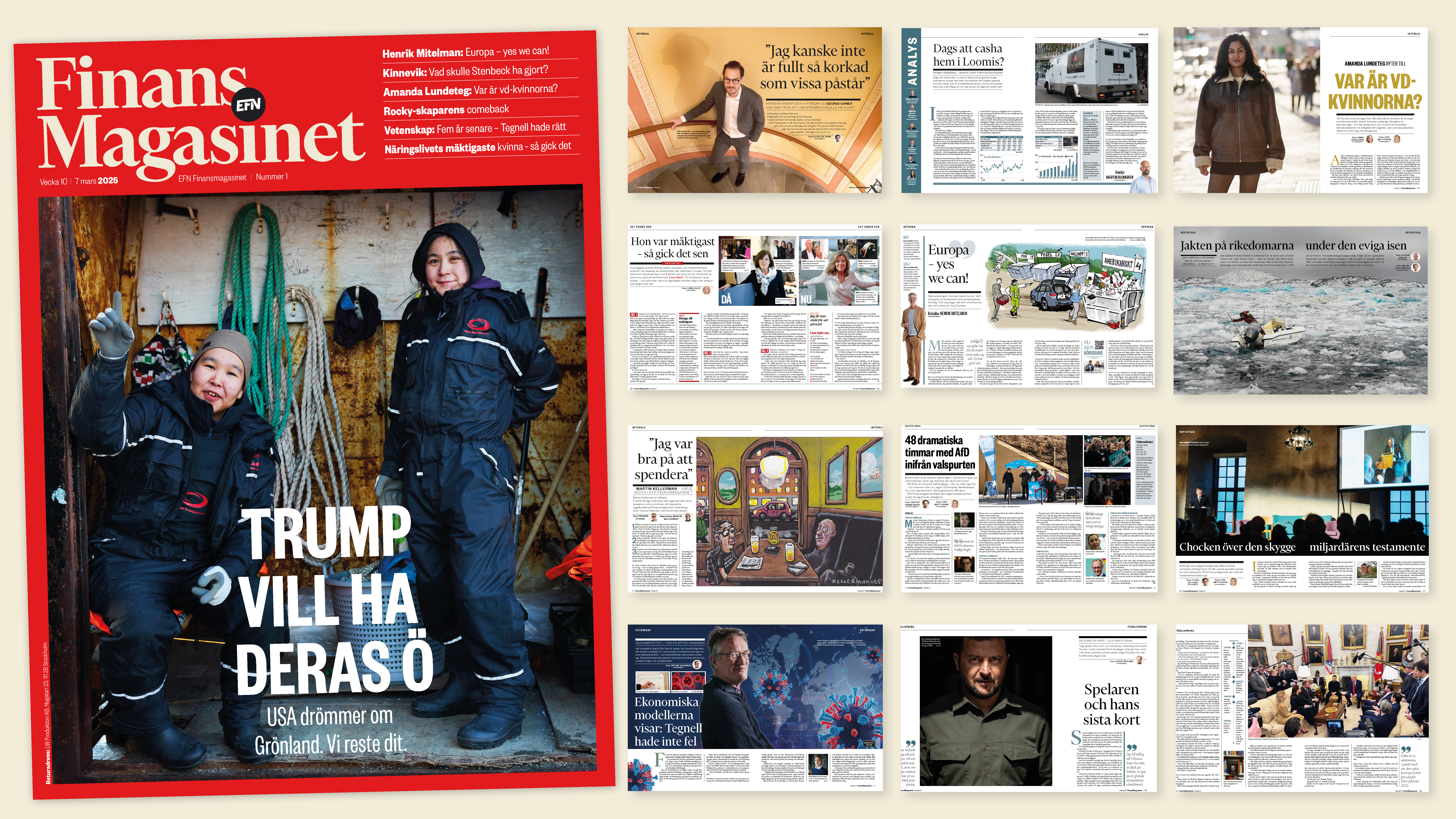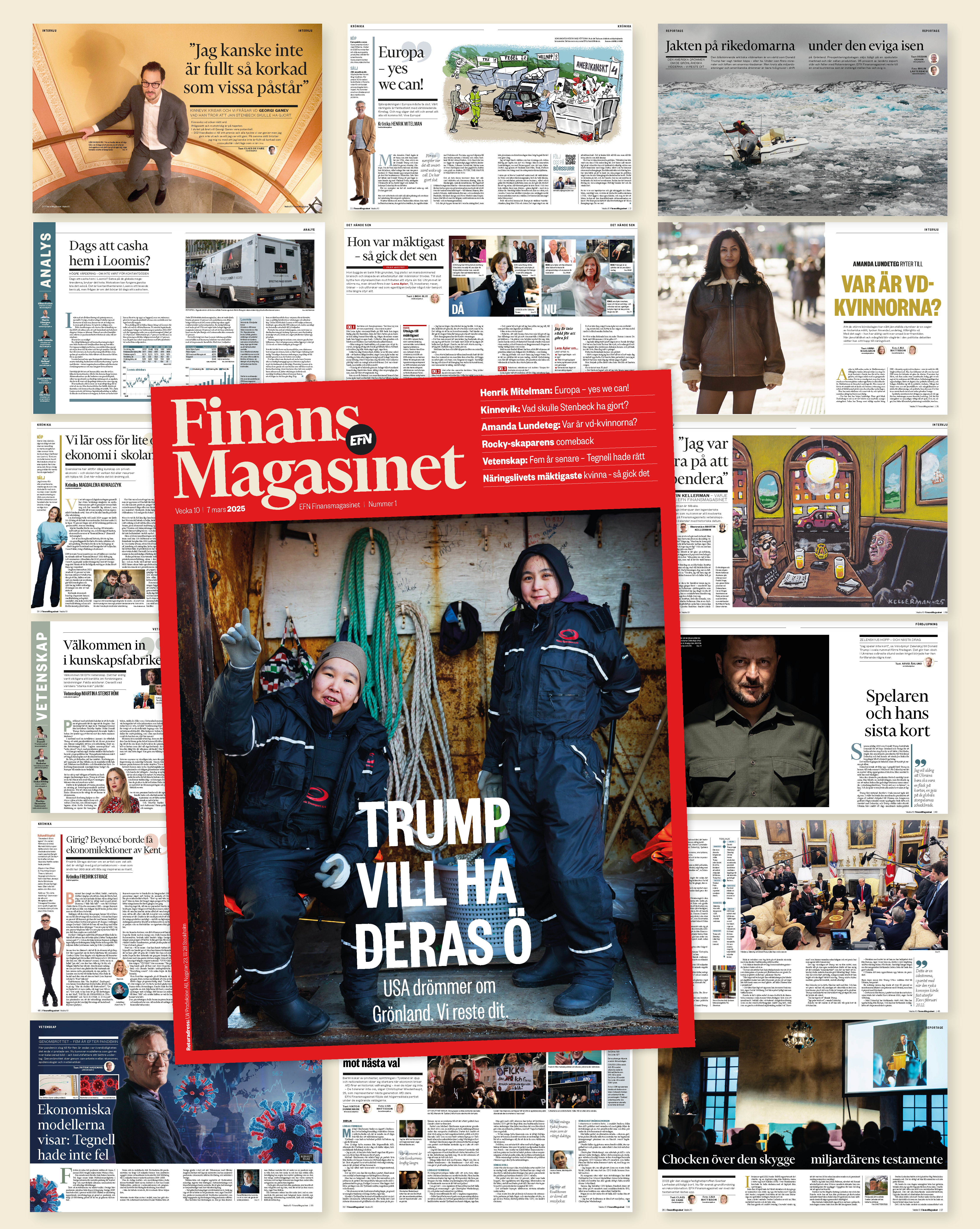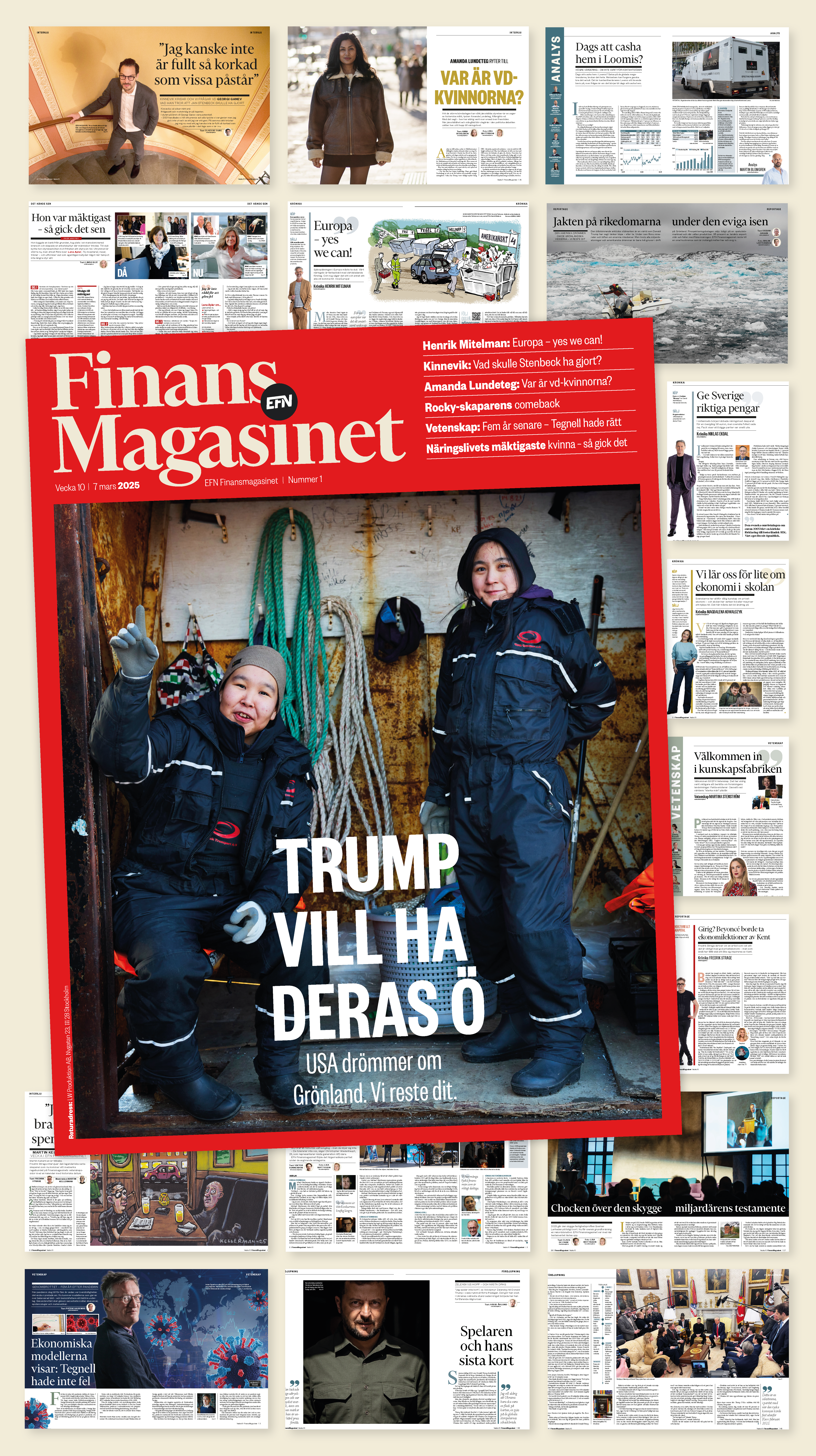 Med exklusiva intervjuer och reportage från platserna som styr marknaden, ger Finansmagasinet läsarna insikterna som krävs för att ligga steget före. Dessutom bjuder magasinet på inspiration inom livsstil – och en hel sektion med vetenskap under nya chefen Martina Stenström, samt en sektion med analys som leds av börschefen Ellinor Beckett.