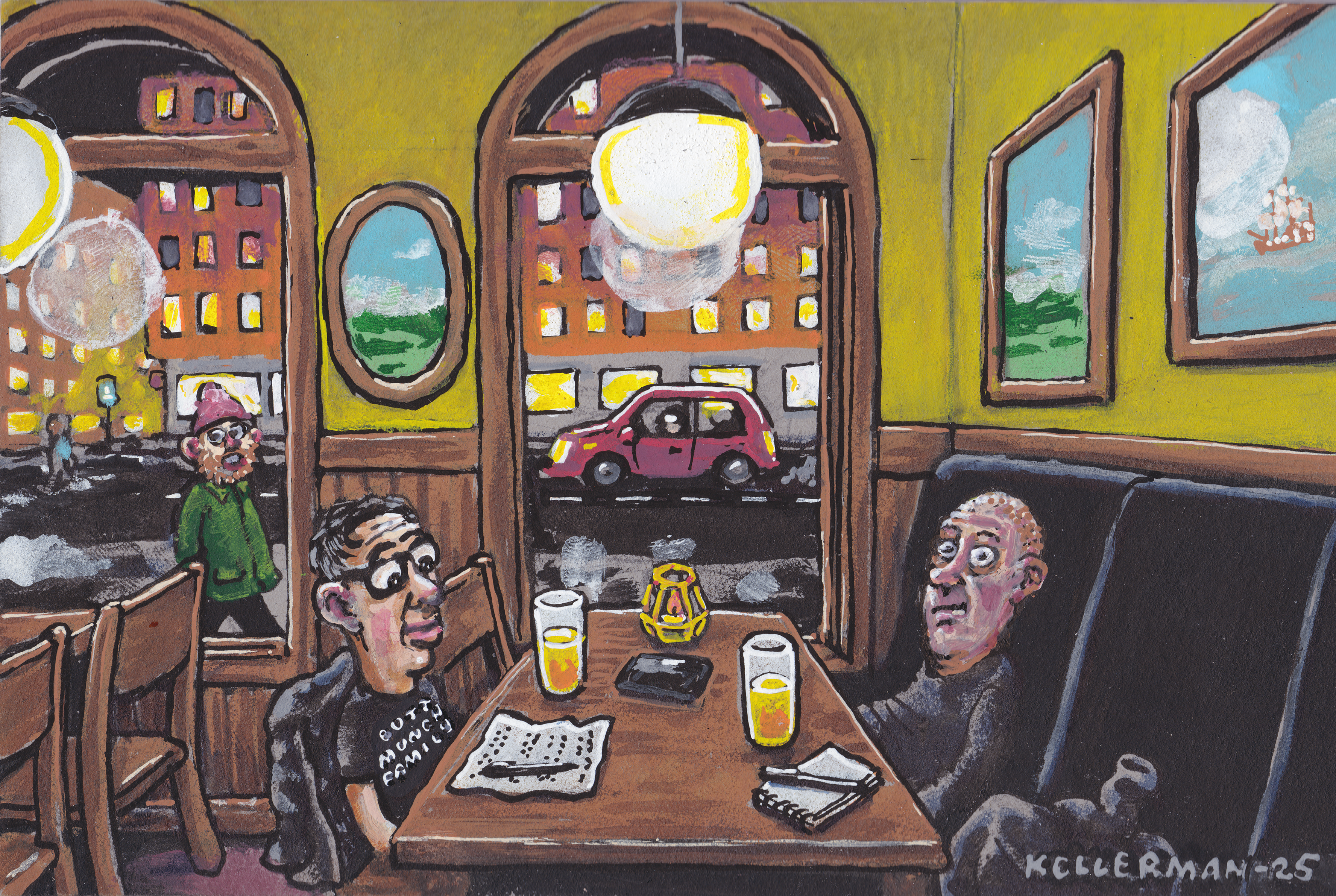 – Min hjärna är proppfull av hans one-liners, säger Strage. Ofta stjäl jag hans tankar utan att märka det själv. Det var ungefär lika jobbigt för mig att Rocky lade ner som att Kent gjorde det. Nu när de ska spela live igen kan jag inte låta bli att hoppas att min favorithund också gör comeback. Jag föreslog det under intervjun och han var inte var helt avvisande. Hur som helst är det inspirerande att ännu en gång få medverka i samma tidning som Martin Kellerman. Att han ritat av mig är en dröm som går i uppfyllelse.