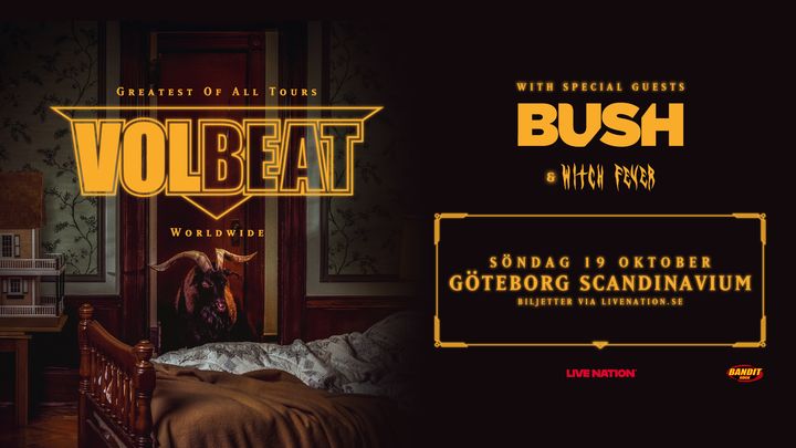 Volbeat släpper nytt album och åker på världsturné – två konserter i Sverige. Volbeat släpper sitt kommande nionde album God of Angels Trust den 6 juni, där vi redan nu kan ta del av ett första smakprov genom videon till den nya singeln By a Monster’s Hand. I samband med albumsläppet ger sig de danska rockgiganterna ut på den massiva turnén Greatest Of All Tours Worldwide – och gör två stopp i Sverige! Med sig har de Bush och Witch Fever som special guests.