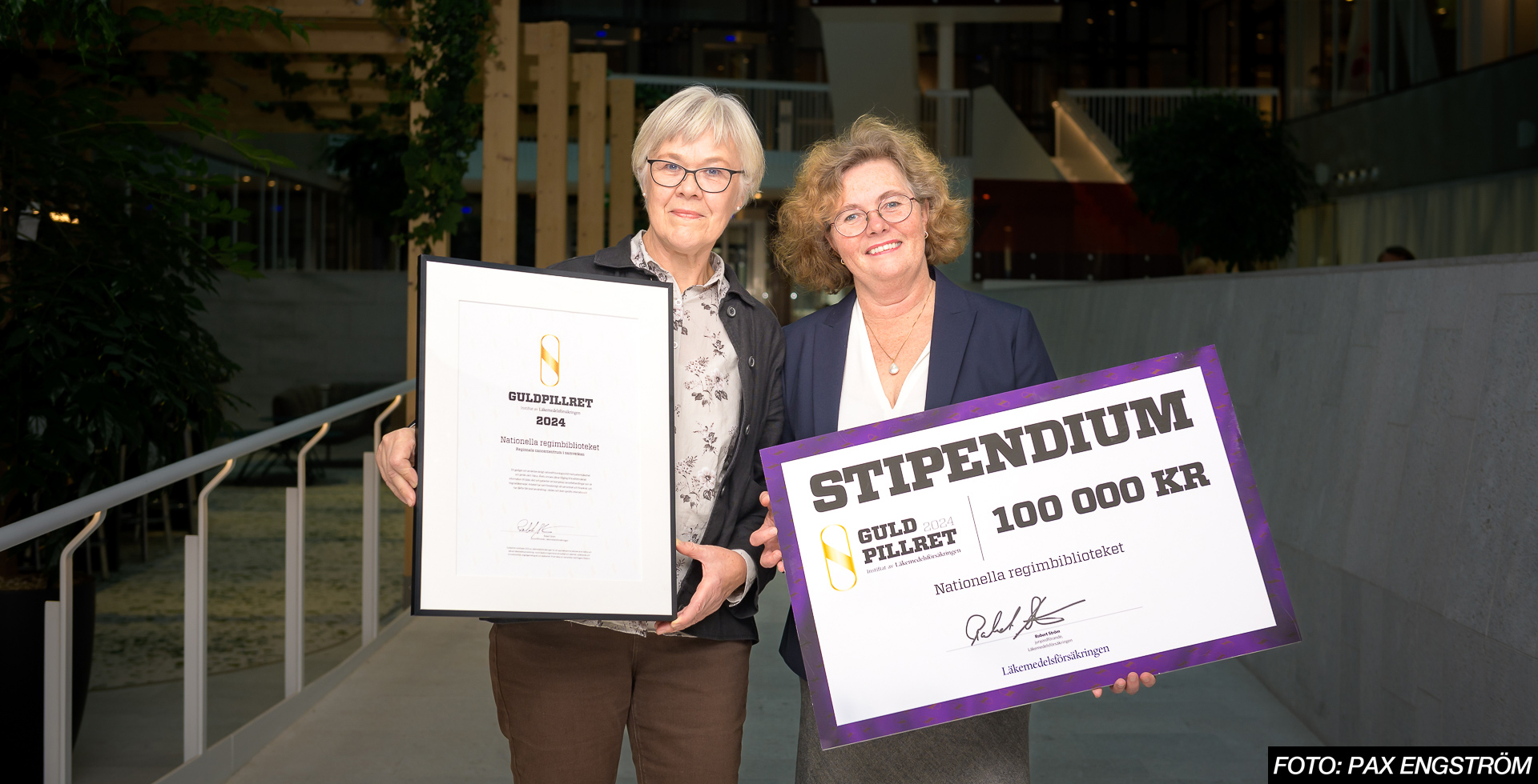 Utmärkelsen Guldpillret instiftades år 2010 av Läkemedelsförsäkringen i samarbete med Dagens Medicin och Läkemedelsmarknaden. Syftet med priset är att uppmuntra anställda inom sjukvården, apotekssektorn, forskarvärlden eller läkemedelsindustrin att identifiera nya arbetssätt och metoder inom hälso- och sjukvården, för att uppnå en säkrare läkemedelsanvändning och därmed en bättre hälsa hos patienterna. Efter två tidigare nomineringar var det i år Regimbibliotekets tur att ta emot Guldpillret.