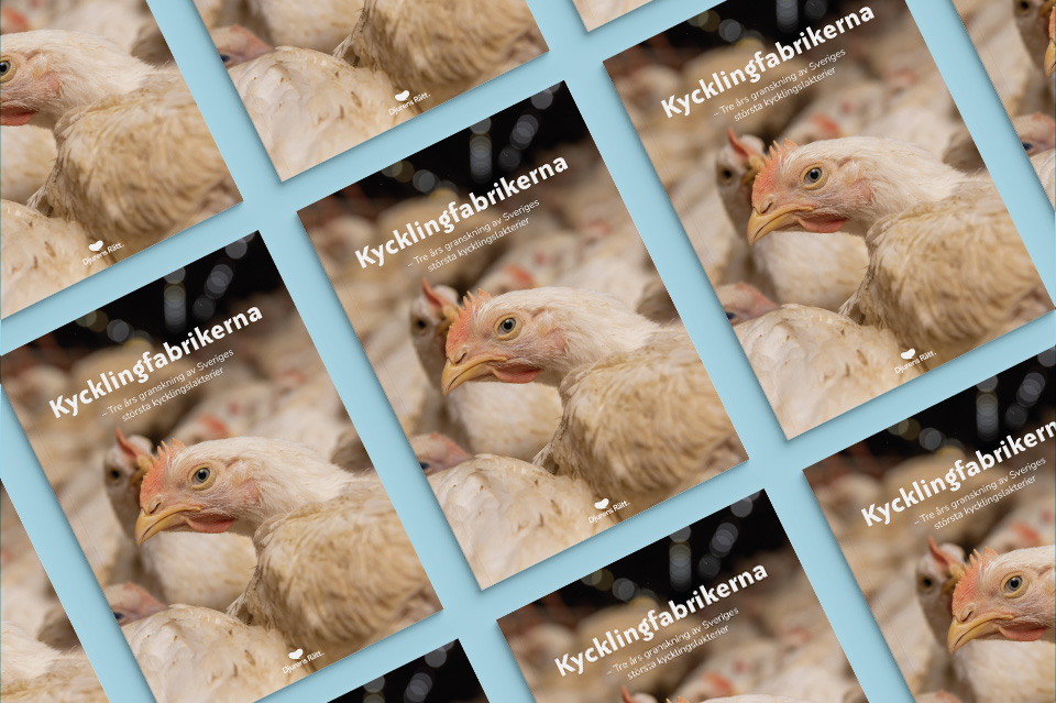 Ett av de största djurskyddsproblemen i Sverige är kycklingfabrikerna där över 100 miljoner kycklingar dödas varje år. I Djurens Rätts nya rapport sammanställs totalt 471 kontrollrapporter som rör djurskydd från Sveriges fyra största kycklingslakterier. Kronfågel, Guldfågeln och Atria står för ungefär 95 % av Sveriges kycklingproduktion. Det som framkommer i rapporten visar på allvarliga djurskyddsbrister och utbrett lidande som inte är lagligt för andra djurslag.