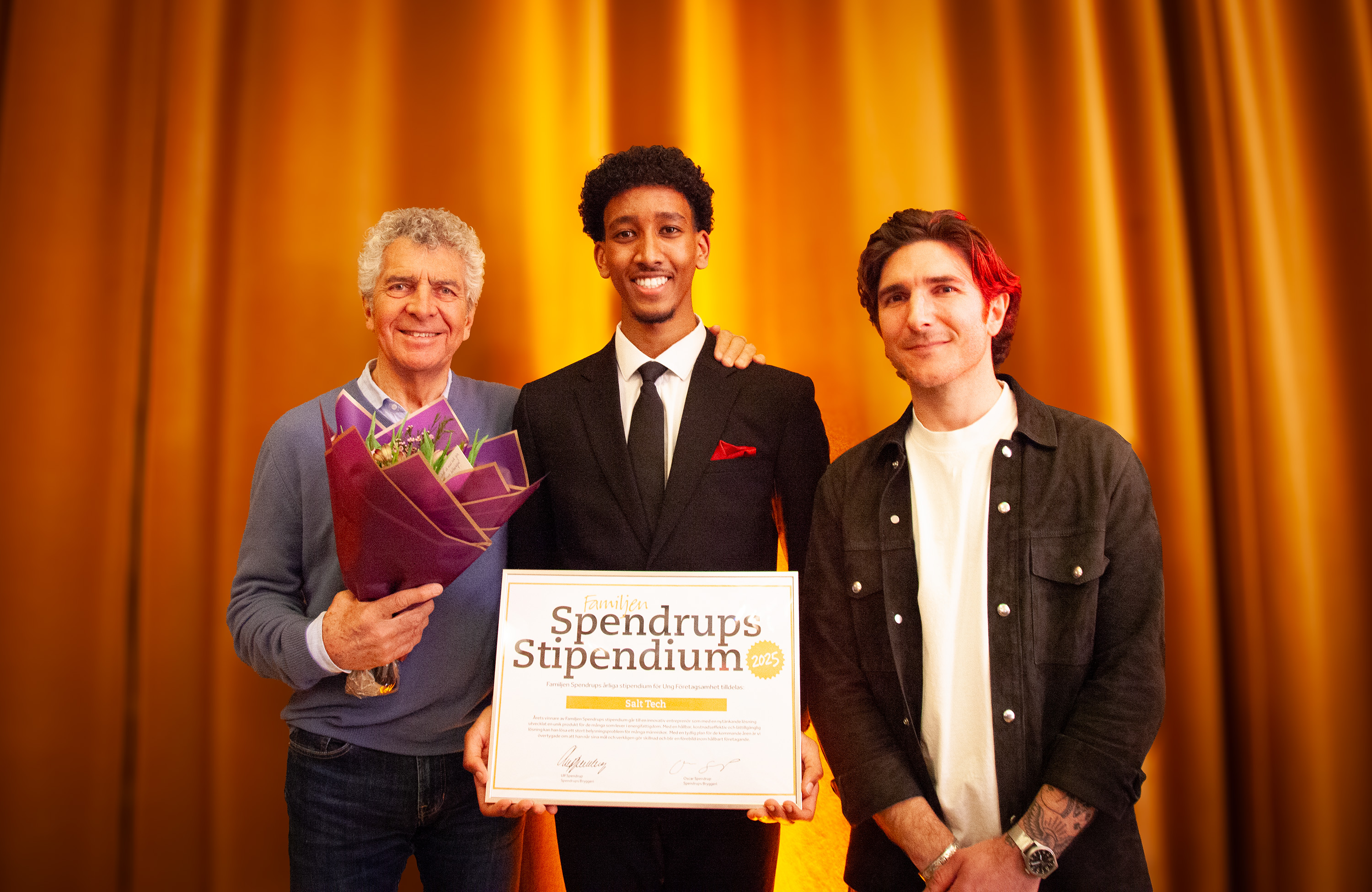 Familjen Spendrup vill uppmuntra och stödja unga entreprenörer i Sverige genom ett årligt återkommande stipendium som har delats ut till tidigare UF-elever sedan 2008. I år går stipendiet till William Asefaw som driver Salt Tech. Företaget har en unik lösning med en lampa som drivs av saltvatten eller urin – som en av lösningarna på elfattigdomen i världen.