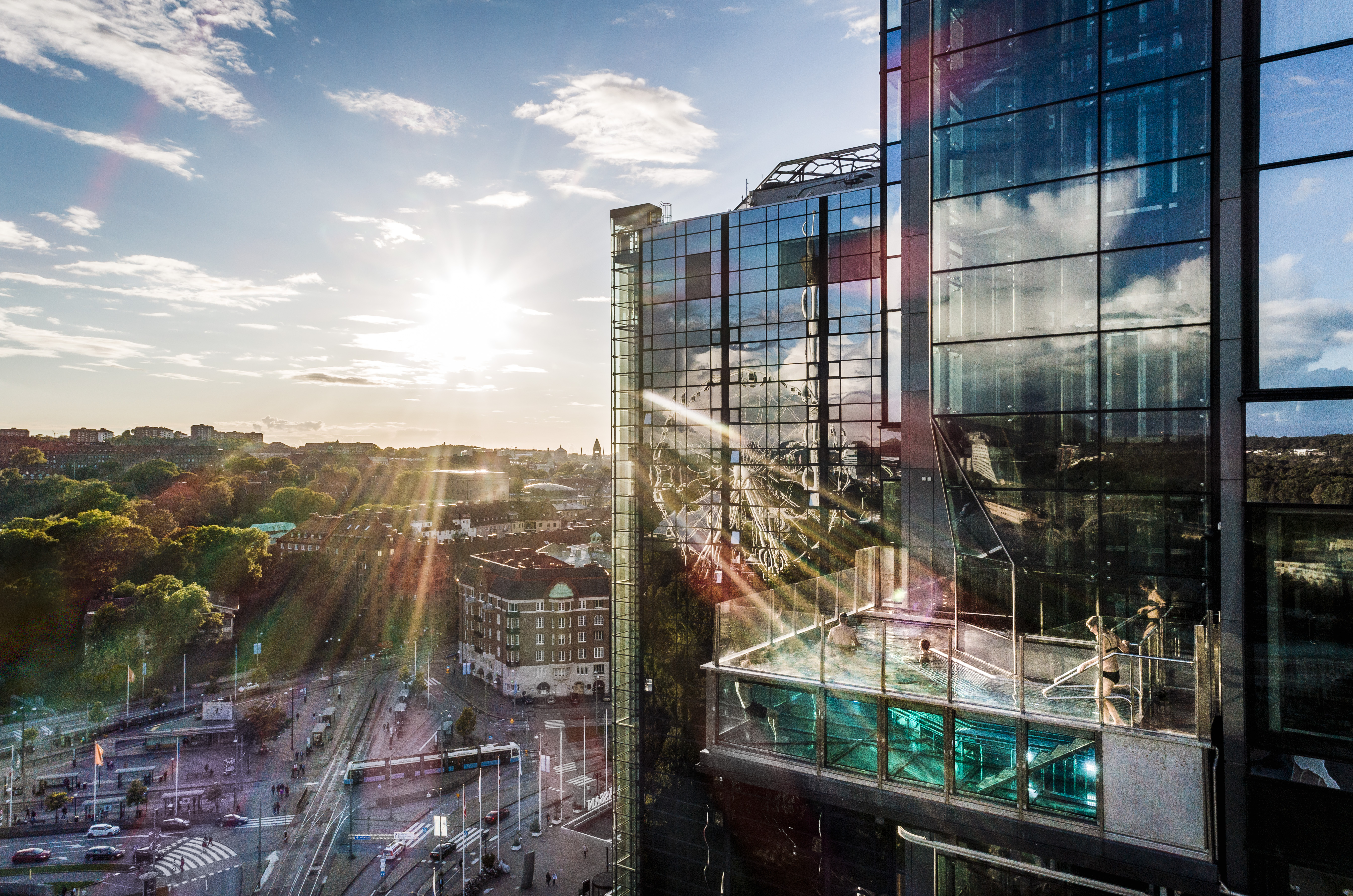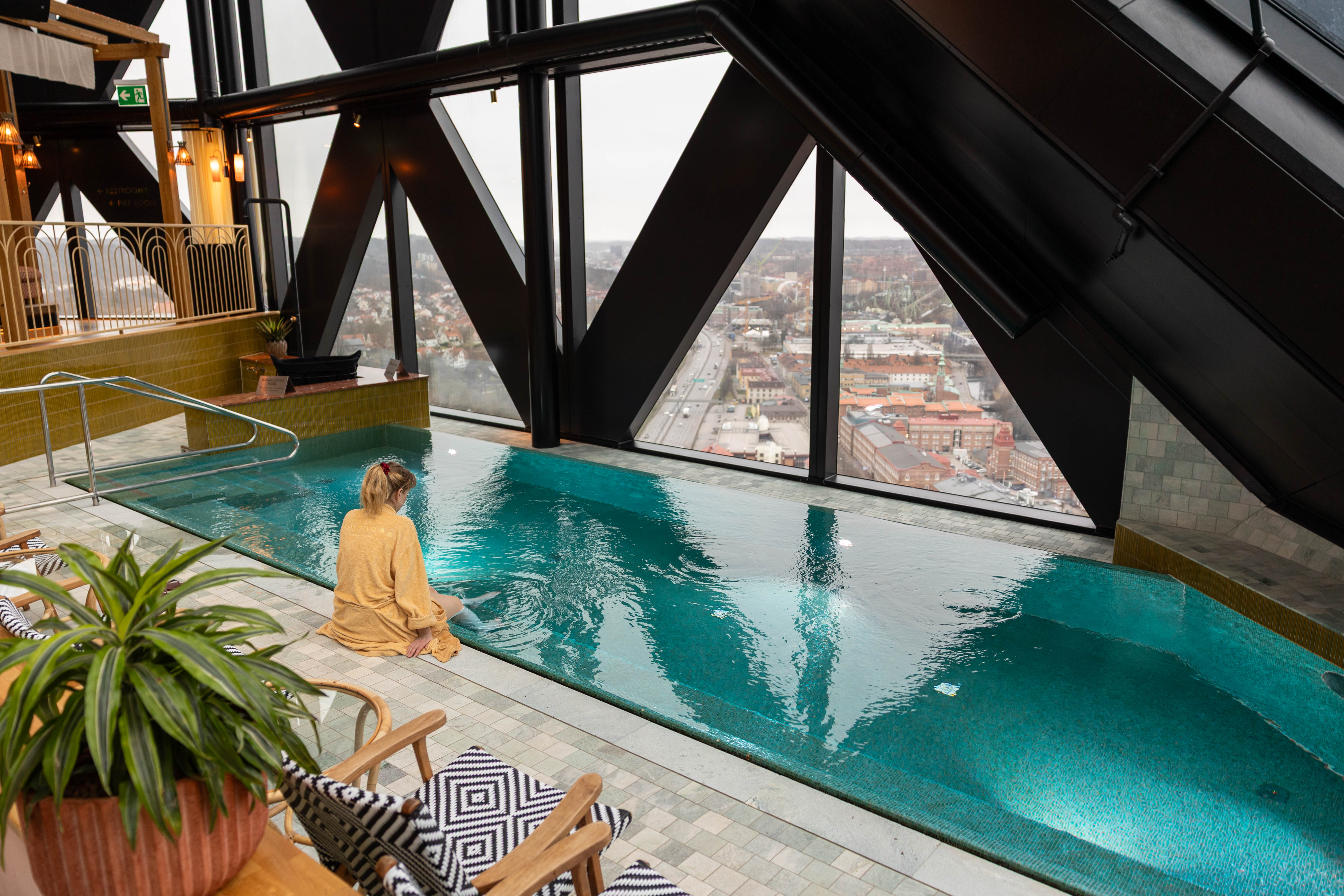 Ett exklusivt spa med fem stjärnor som har hamam, ång- och torrbastu, upplevelsedusch och tre pooler. Och inte minst en fantastisk utsikt över stan med den legendariska frihängande utomhuspoolen med glasgolv på våning 19. Vågar du simma ut?