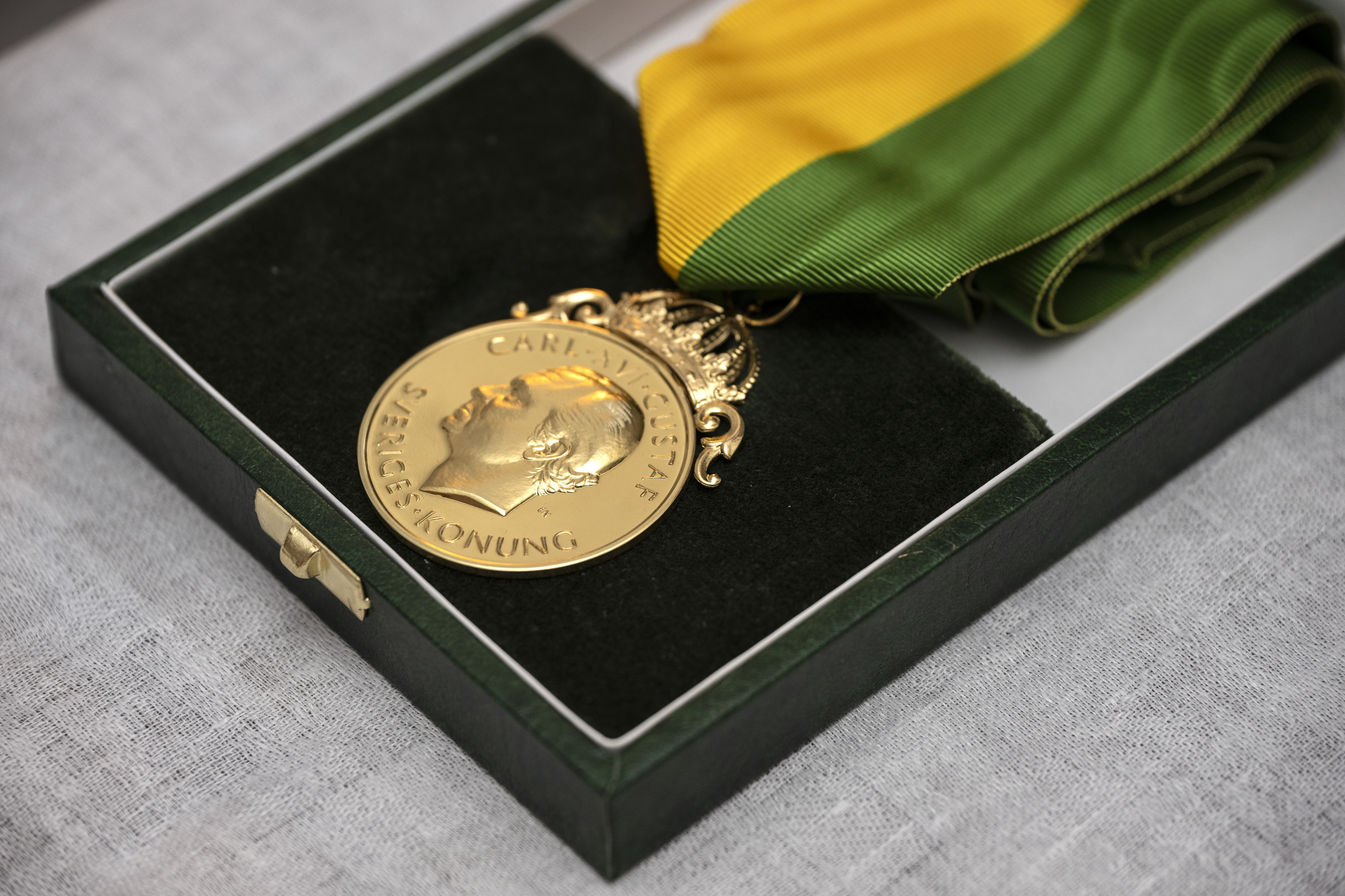 Nu tilldelas han Medalj för betydande gärning och motiveringen lyder ”för hans synnerligen framgångsrika gärning inom alla de fält som Sällskapet belönar: näringsliv, socialt och pedagogiskt arbete samt kultur”. Medaljen delades ut vid en sammankomst den 18 mars. Förslagsställare är ledamoten Susann Silfverstolpe som överlämnade medaljen tillsammans med ordförande Christina von Arbin.