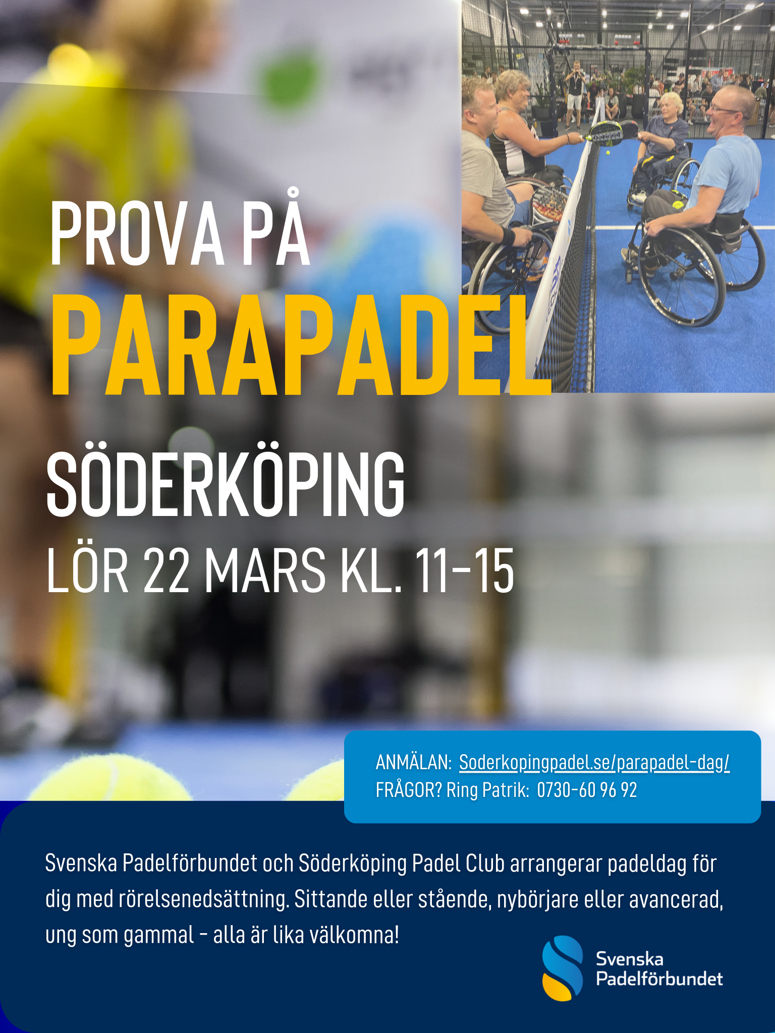 Anmälningslänk: soderkopingpadel.se/parapadel-dag/