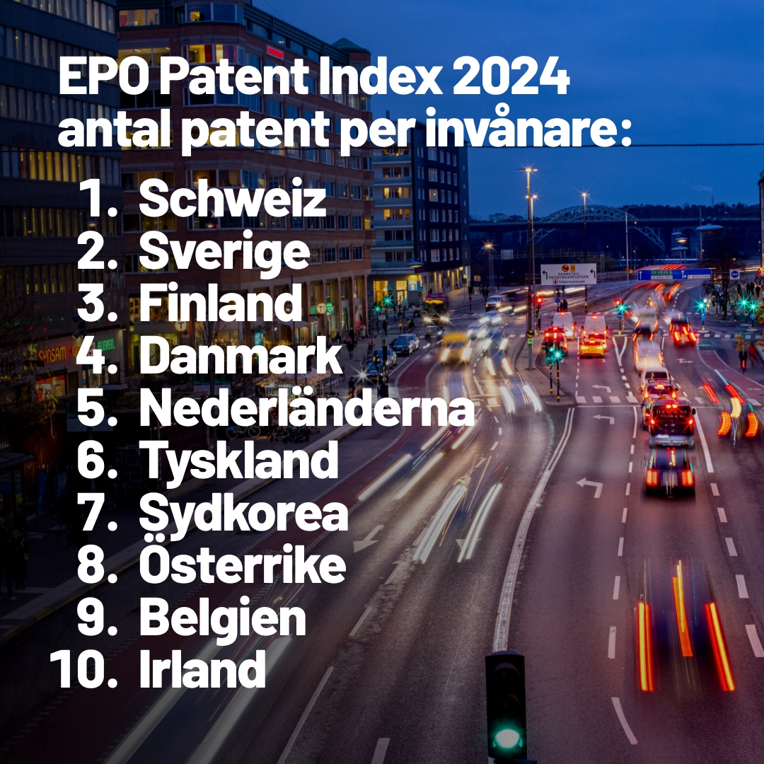 Det globala patentlandskapet fortsätter att vara dynamiskt trots ekonomisk osäkerhet. Den europeiska patentmyndigheten (EPO) tog emot nästan 200 000 patentansökningar under 2024, vilket är i linje med föregående år. Sverige placerar sig på andra plats i patentansökningar per miljon invånare, endast efter Schweiz. Detta enligt Patentindex 2024, som publicerats av EPO.