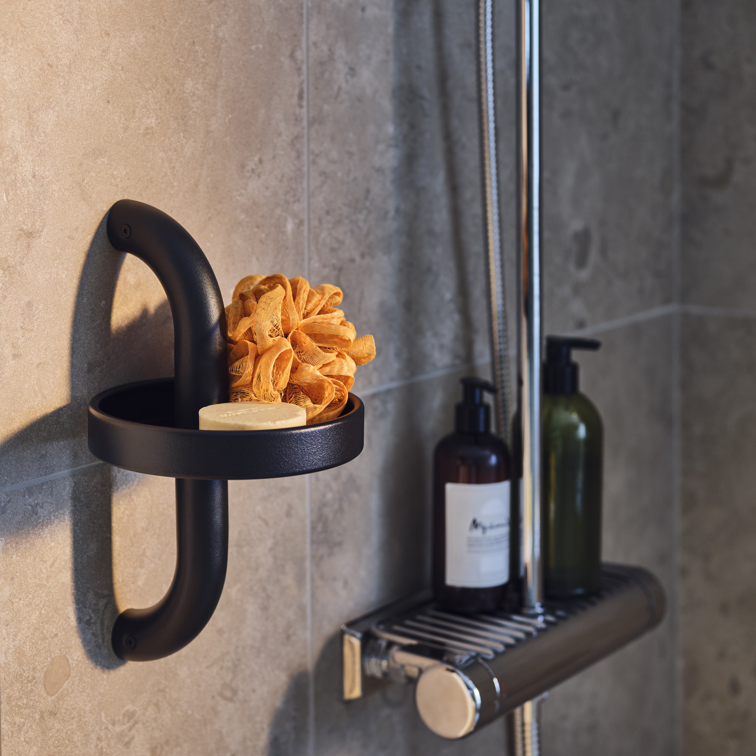 Produkterna i BÄSINGEN-serien har multifunktionella syften. De är robusta och de halkfria fötterna och hålen för dränering gör dem till en utmärkt lösning att använda i badrum. De mjuka kanterna och rörens diameter är tillräckligt tjocka för att ge ett bekvämt grepp. Valet av den mörka antracitfärgen är inte bara för en vacker design utan också för att säkerställa att produkterna är väl synliga i sin omgivning.