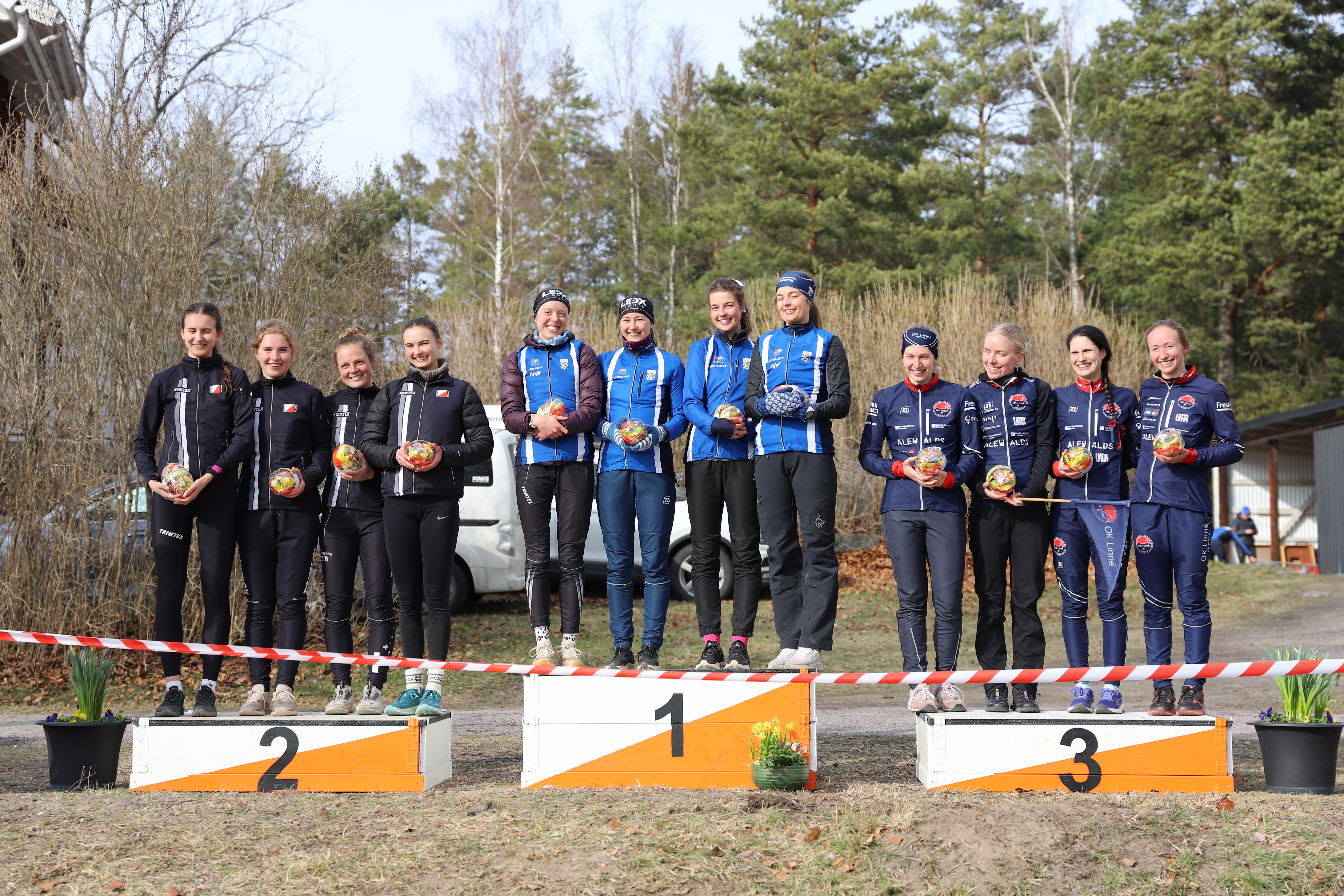 Men på damsidan var det en tuff duell med ett annat Göteborgslag, nämligen Göteborg-Majorna OK som ledde på sista sträckan som Sabina Aumo sprang och landslagslöparen Sanna Fasth från IFK Göteborg Orientering fick jaga.