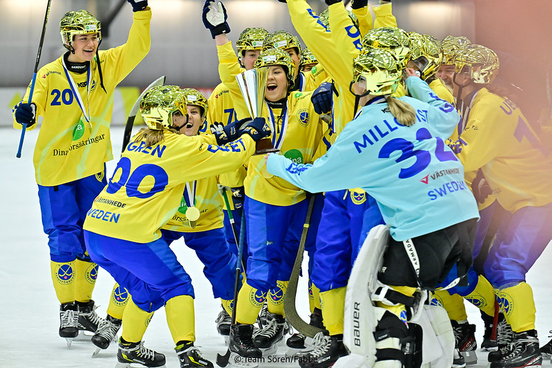 Det svenska damlandslaget är återigen världsmästare. För toflte gången vinner de blågula damerna VM, med stora och klara siffror. Finalen mot Norge slutar 8-1 (3 - 1).