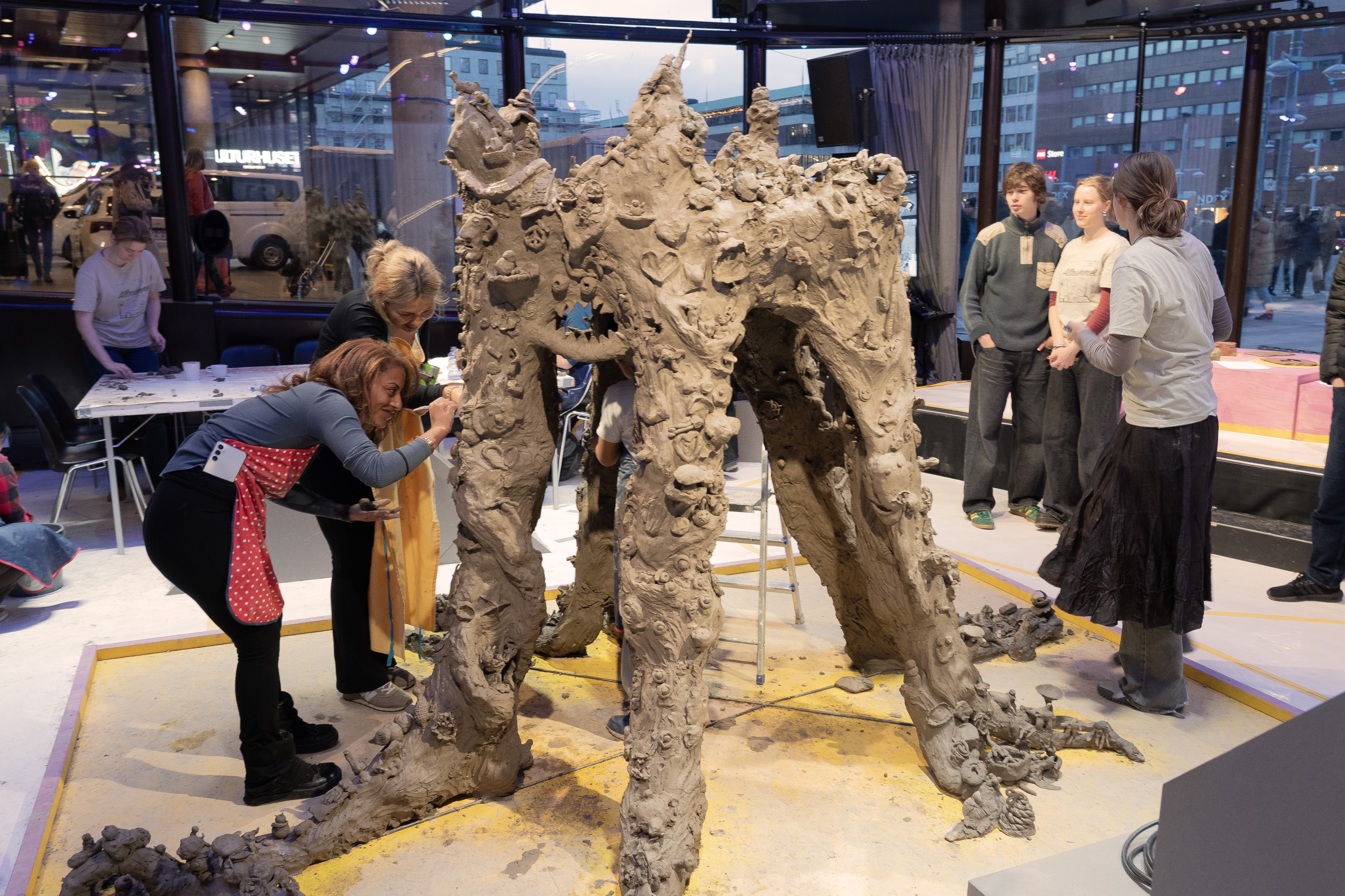 Under läslovet 2024 samlades 500 besökare i alla åldrar för en serie av workshops. Tillsammans skapade de en storskalig lerskulptur, som därefter 3D-skannats och gjutits till en miniatyr i brons för att bli en del av det slutgiltiga, permanenta konstverket.