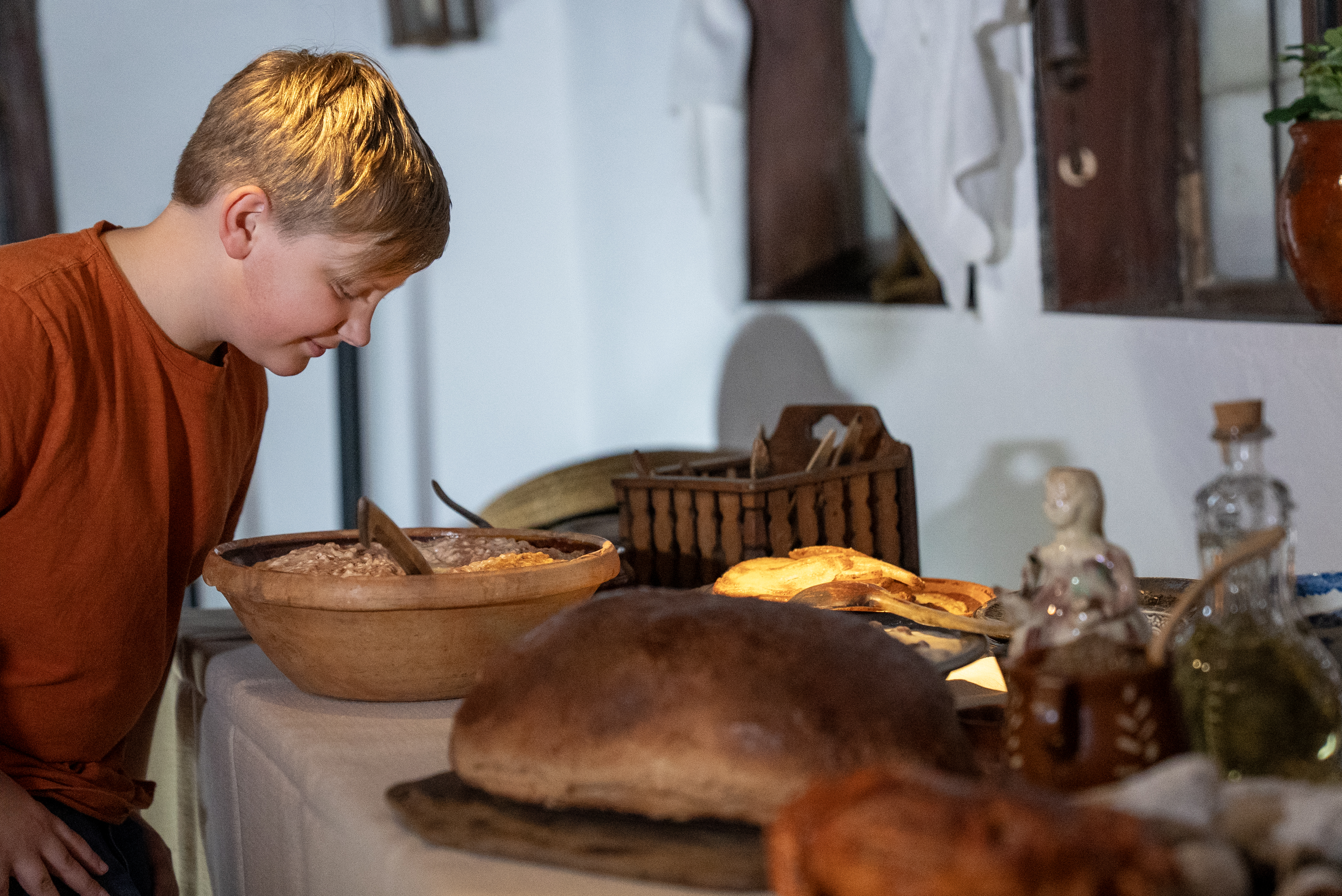 – Vi vill fånga barnens intresse, säger Johanna Lisberg Jensen, utställningsproducent och projektledare. Utställningen utgår från fyra skånska rumsmiljöer som sattes upp i Allmogehallen år 1929. Vi vill ge dem nytt liv och visa hur livet såg ut för dem som en gång levde på landet i Skåne.