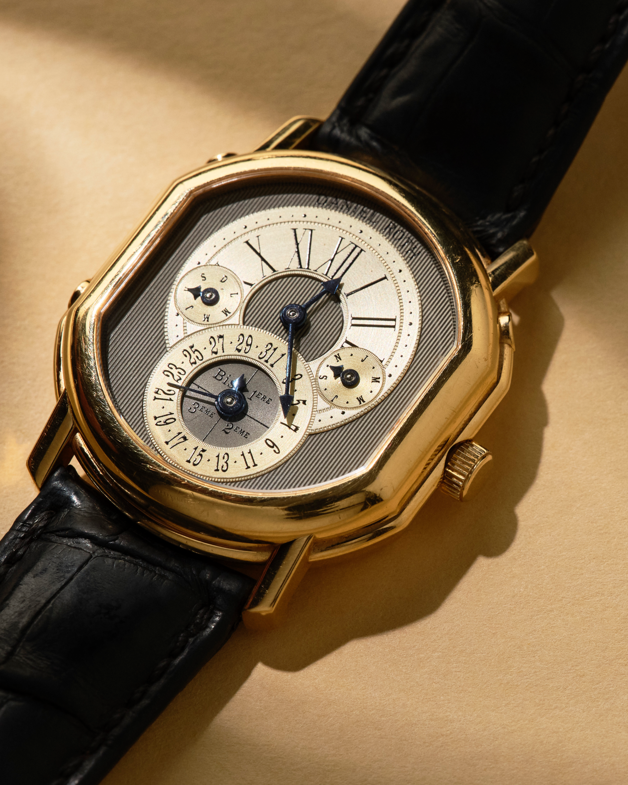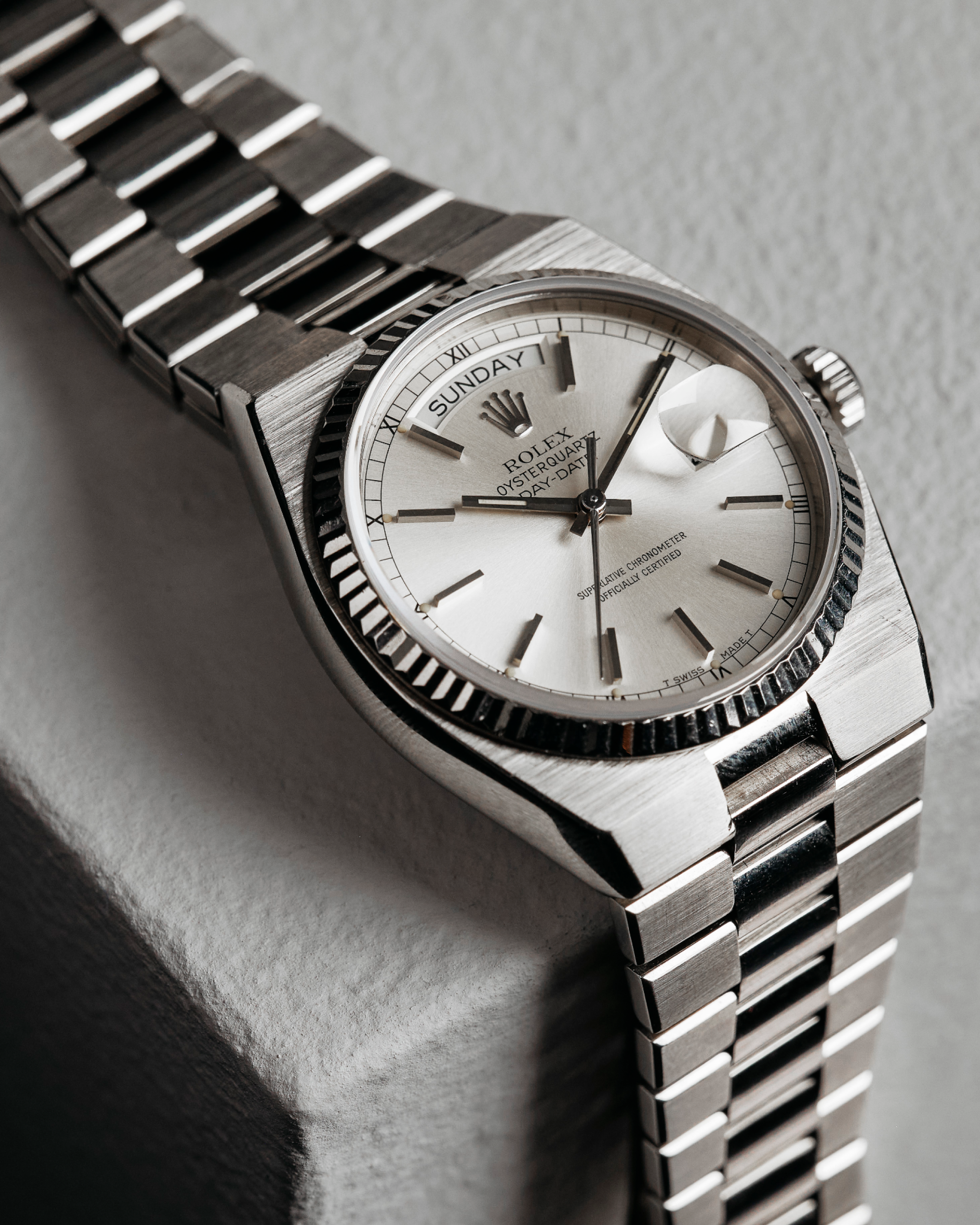 Vidare presenteras en sällsynt Perpetual Calendar från Daniel Roth, en exklusiv Rolex Oysterquartz i vitguld, en Rolex Day-Date med onyxurtavla samt två ovanliga A. Lange & Söhne Lange 1.