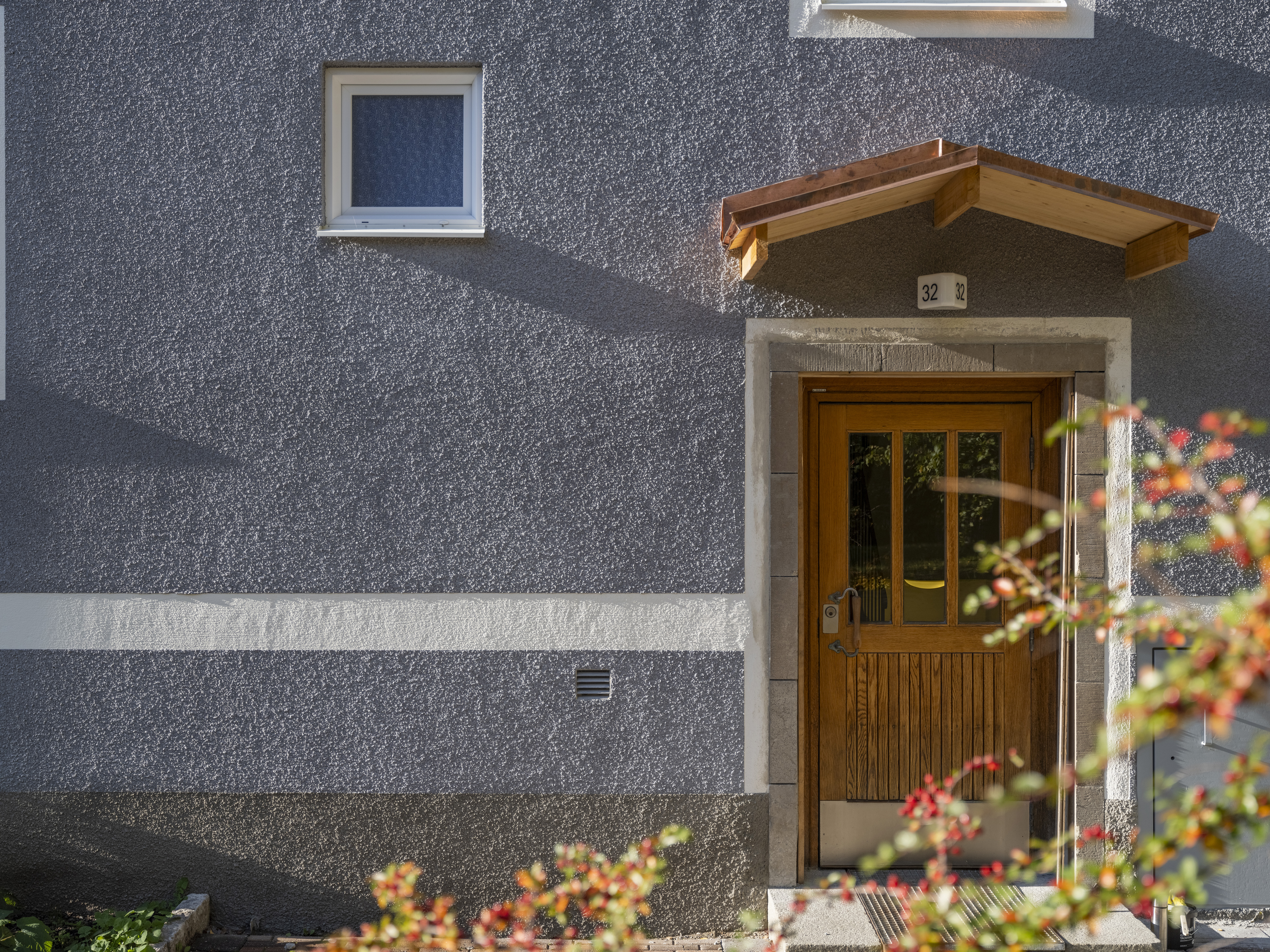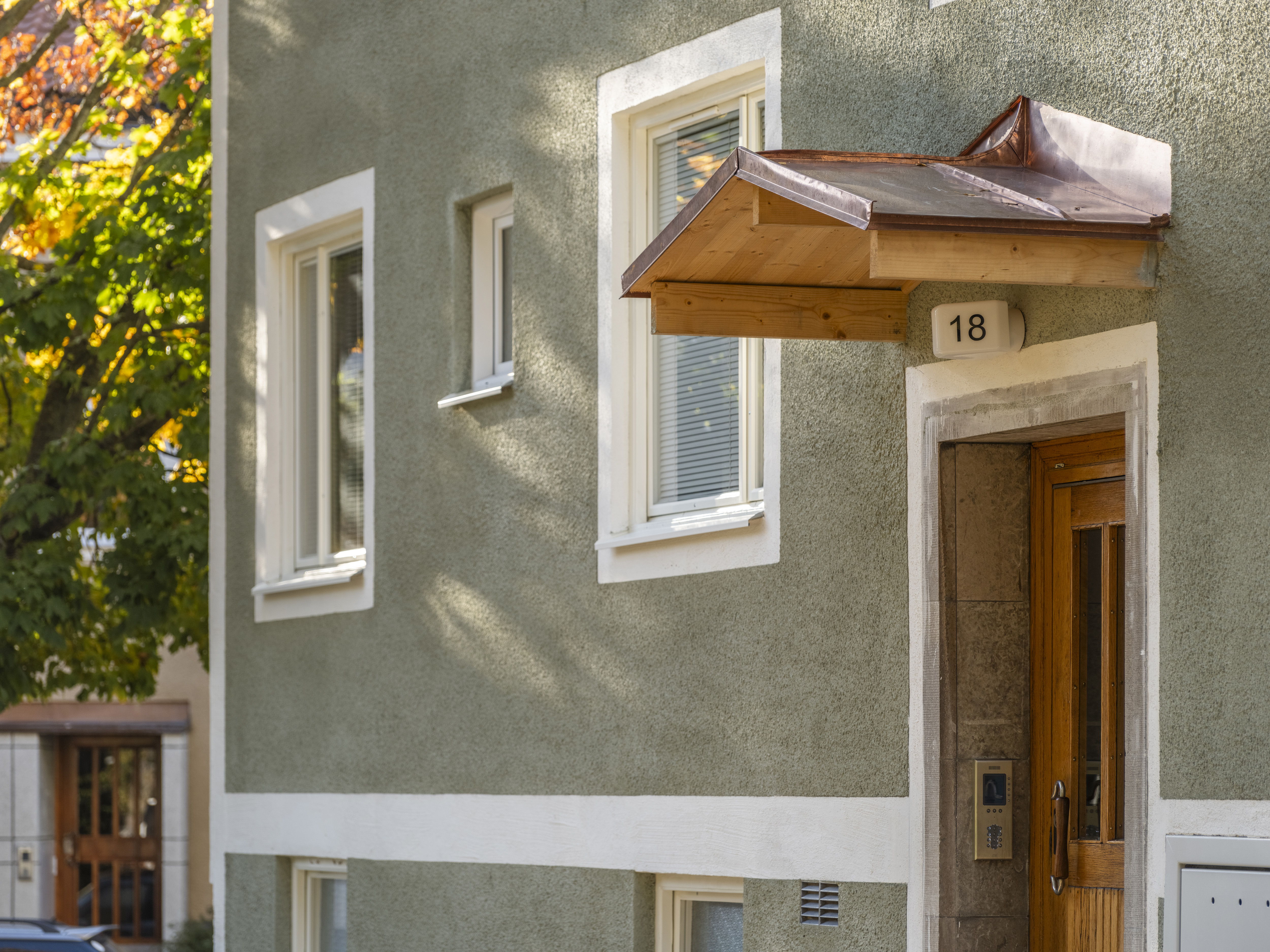 - Balkongfronter, entrépartier och portar har fräschats upp