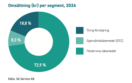 Trots den stora tillväxten i omsättning så uppgår företagens samlade rörelseresultat enbart till 2,1procent. Antalet fysiska apoteksbutiker minskade under året till 1397. Apotekstätheten under 2024 låg på samma nivå som 2011, med drygt 13 apotek per 100 000 invånare.