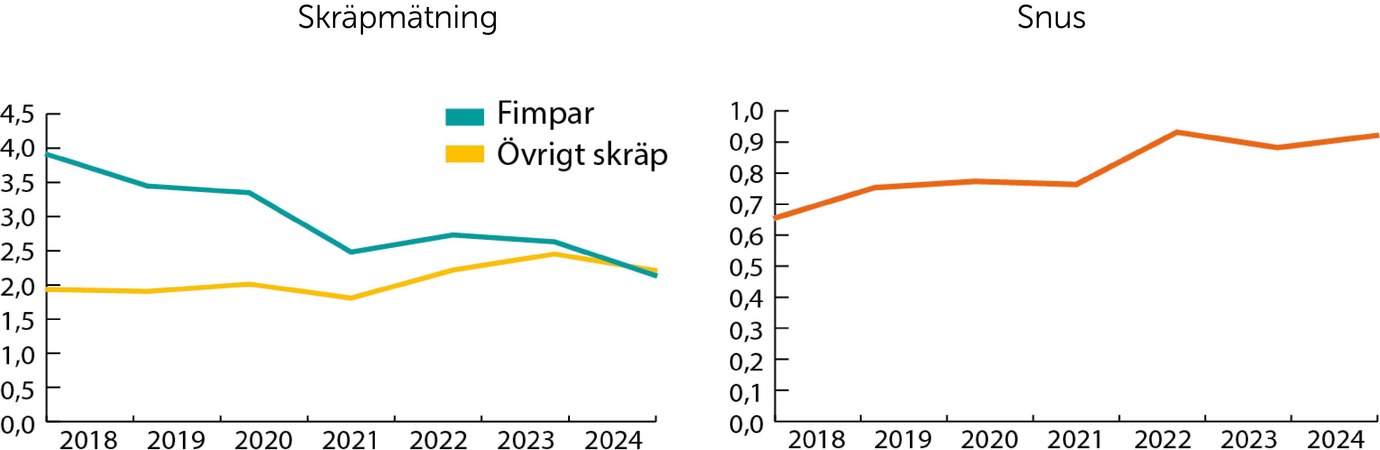 Fimpar minskar, snusskräpet ökar och vejps blir allt vanligare