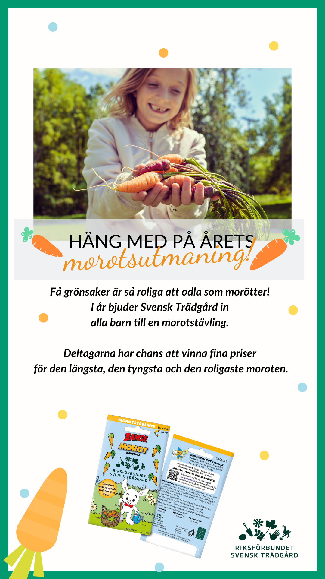 Idag, på Morotsdagen, bjuder Riksförbundet Svensk Trädgård in alla barn upp till 13 år till ett spännande morotsäventyr. Målet? Att odla den tyngsta, längsta eller roligaste moroten!