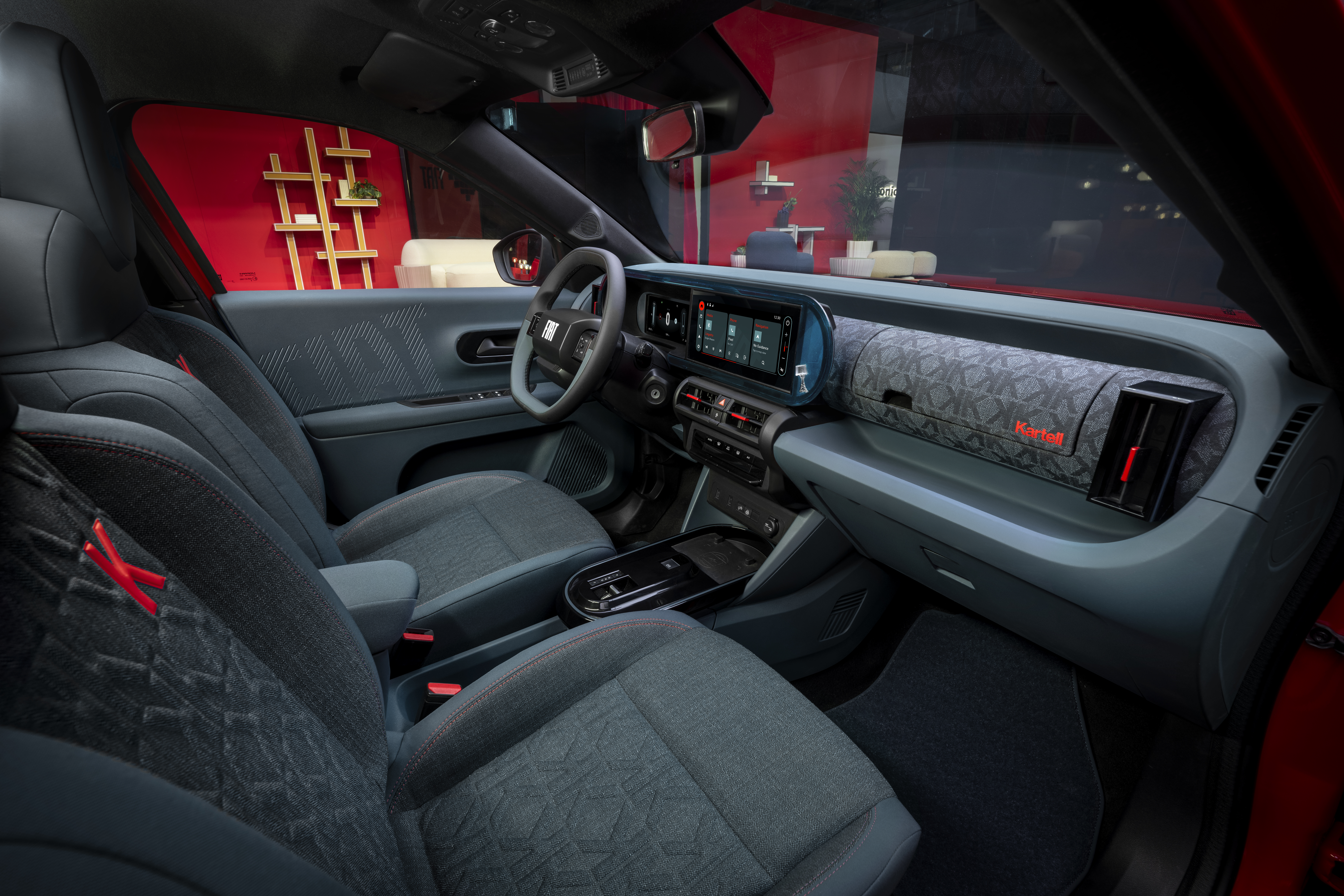 - I centrum står nya Fiat Grande Panda Kartell – ett samarbetsprojekt mellan det välkända italienska designmärket Kartell och FIAT Centro Stile.