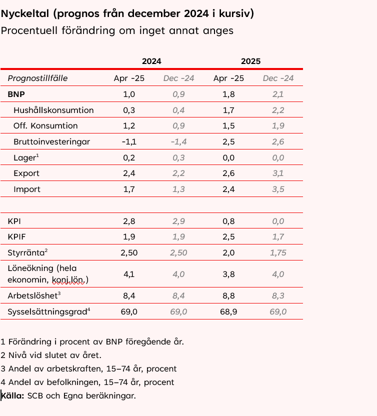 Efter drygt två år av nolltillväxt började de ekonomiska hjulen äntligen att snurra lite snabbare under hösten 2024. I LO-ekonomernas huvudscenario fortsätter uppgången under 2025, den internationella turbulensen till trots.