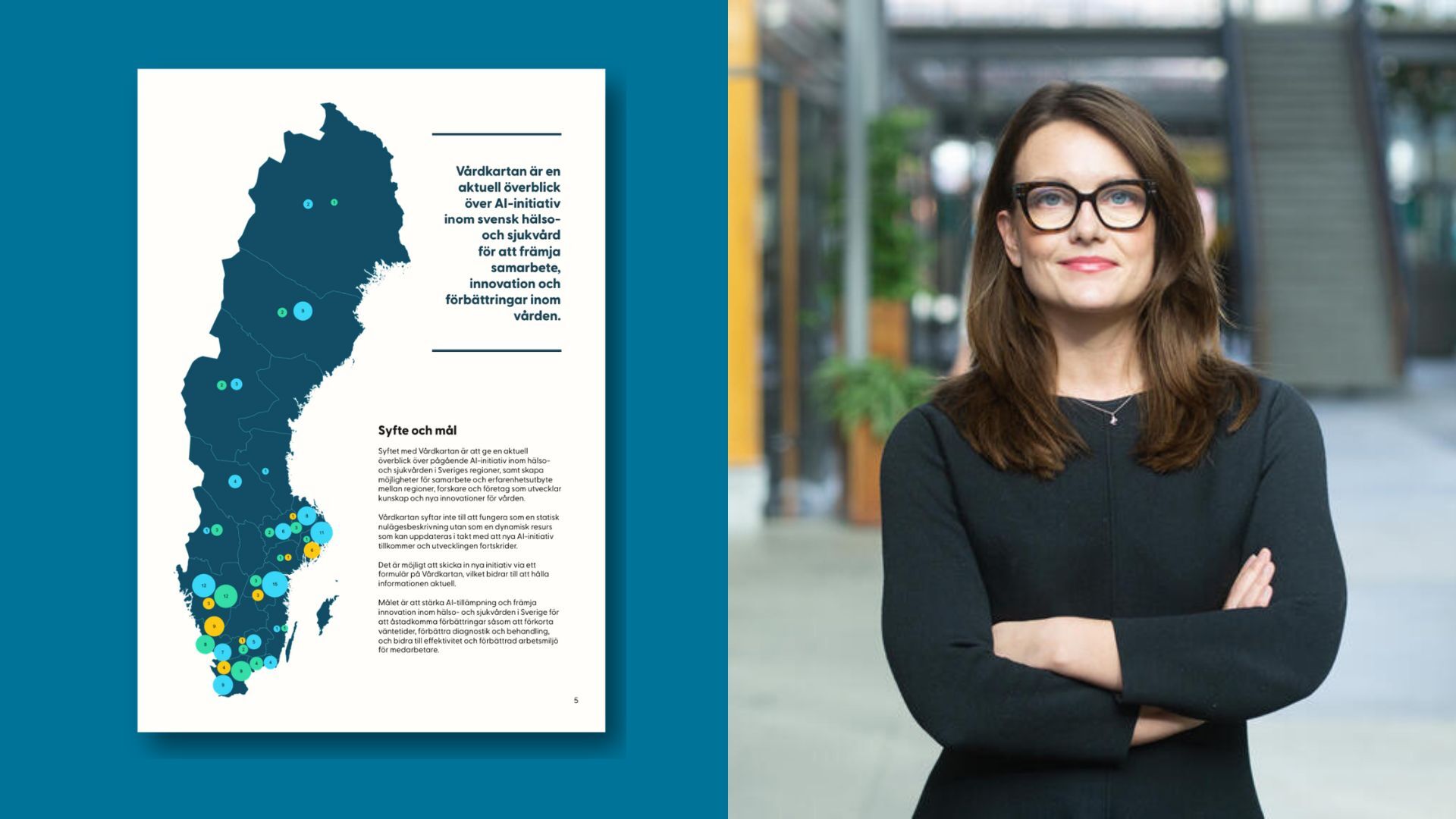 De regioner i Sverige som har flest initiativ är Västra Götalandsregionen, Region Halland, Region Skåne, Region Östergötland samt Region Stockholm. Dessa fem står för över 60 procent av alla AI-initiativ i landet.