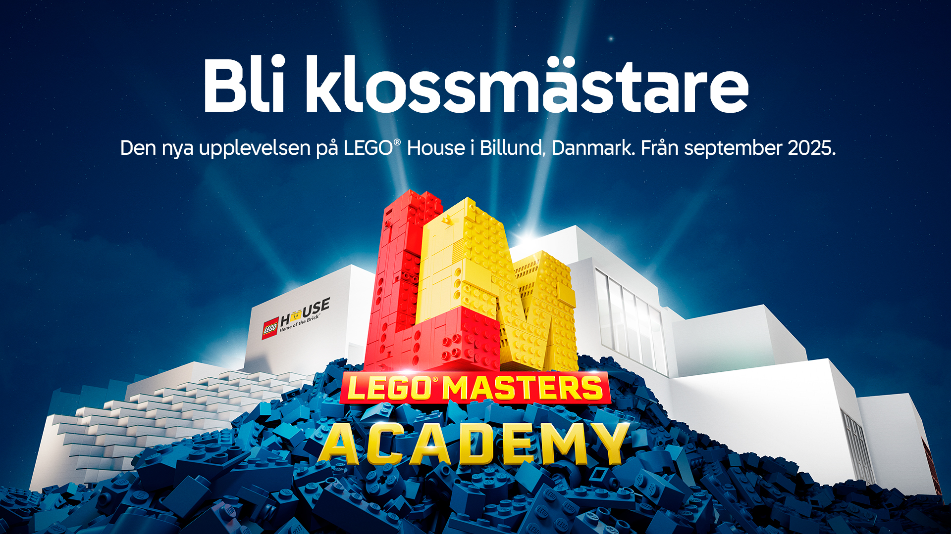 LEGO® Masters Academy öppnar i LEGO® House och erbjuder en ny upplevelse med inspiration från tv-serien LEGO Masters. Besökare i alla åldrar kan utveckla sina byggkunskaper och delta i kreativa utmaningar på fyra nivåer. LEGO® Masters Academy kombinerar lek och lärande för att inspirera framtidens LEGO-mästare. Den 17 september slår LEGO® Masters Academy upp portarna för alla LEGO-byggare.