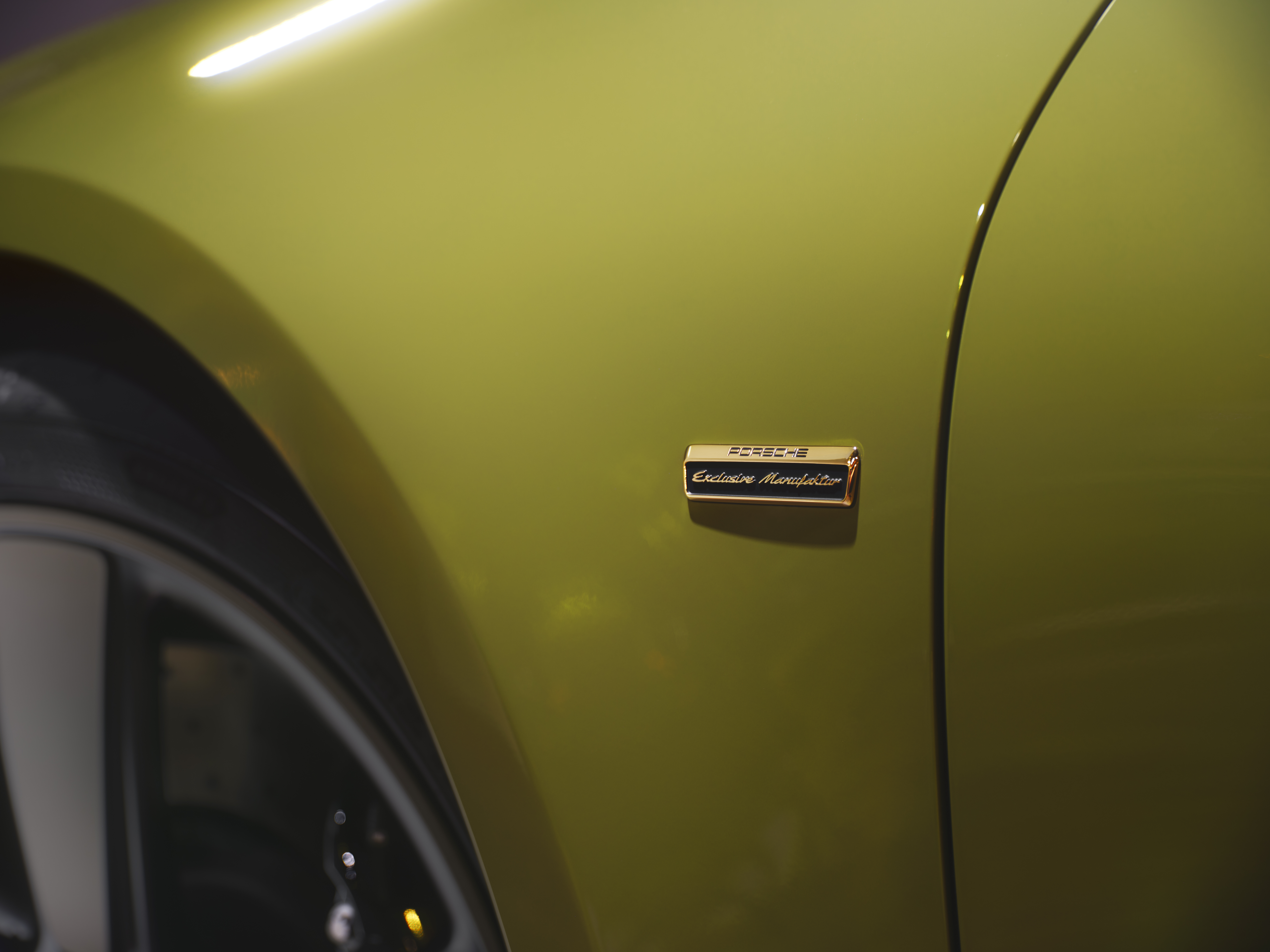 Formgivarna och lackexperterna på Porsche skapade färgen Olive Neo speciellt för 911 Spirit 70 – en fyllig, djupgrön nyans med en modern underton. Bronzit utgör en spännande kontrast till denna färg. Det nedre bakpartiet, frontpartiet och Sport Classic-fälgarna i ”Fuchs”-design är lackerade i denna grå-guldfärg. Suffletten är svart, liksom vindruteramen, vilket understryker det unika utseendet på 911 Spirit 70.