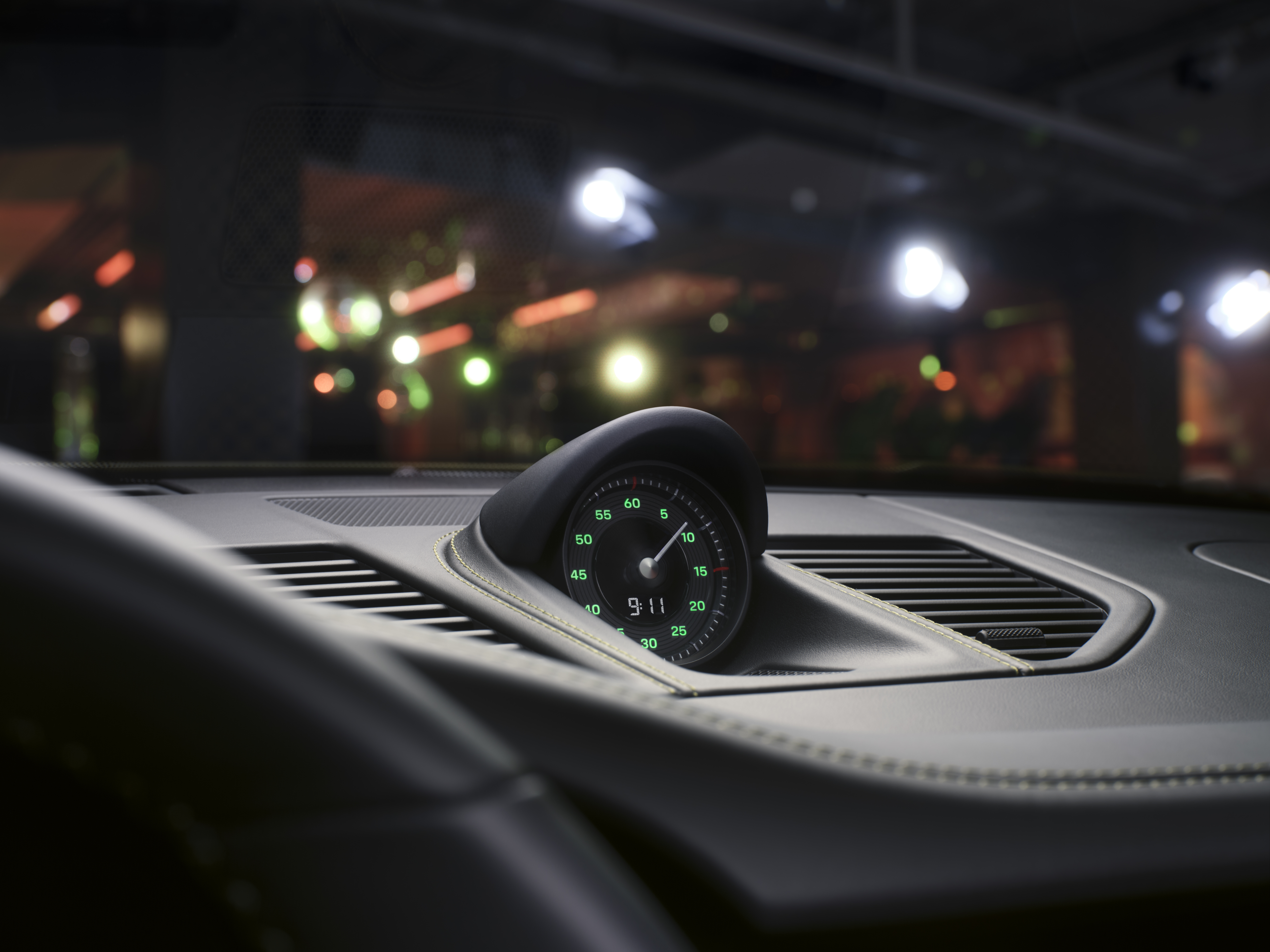 Kombiinstrumentet förenar historisk design med modern teknik. Den högupplösta 12,65-tumsdisplayen har vita visare och markeringar i analogt format. Gröna siffror påminner om den legendariska Porsche 356 och modellinskriptionen är elegant integrerad i den helt digitala varvräknaren. Vita visare och gröna siffror kännetecknar även specialversionen av Sport Chrono-urtavlan.