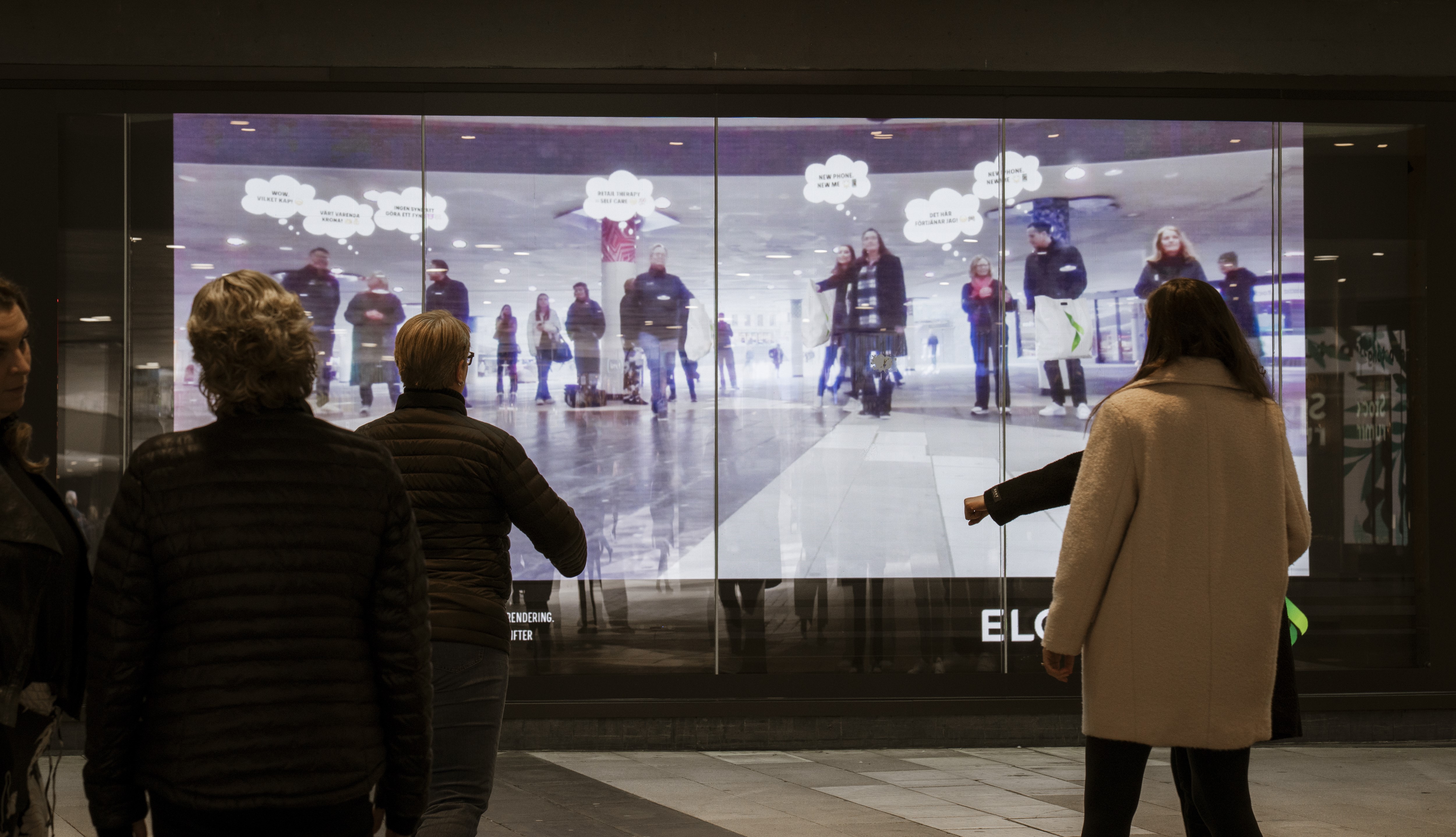 Elgiganten sätter upp en installation på Sergels torg där förbipasserande ser sig själva på storbildsskärm – med en virtuell Elgiganten-påse i handen och roliga tankar kopplade till sitt köp. Med hjälp av teknologier som Augmented Reality (AR) och skeleton tracking skapar Elgiganten en interaktiv, engagerande och minnesvärd upplevelse för de förbipasserande.